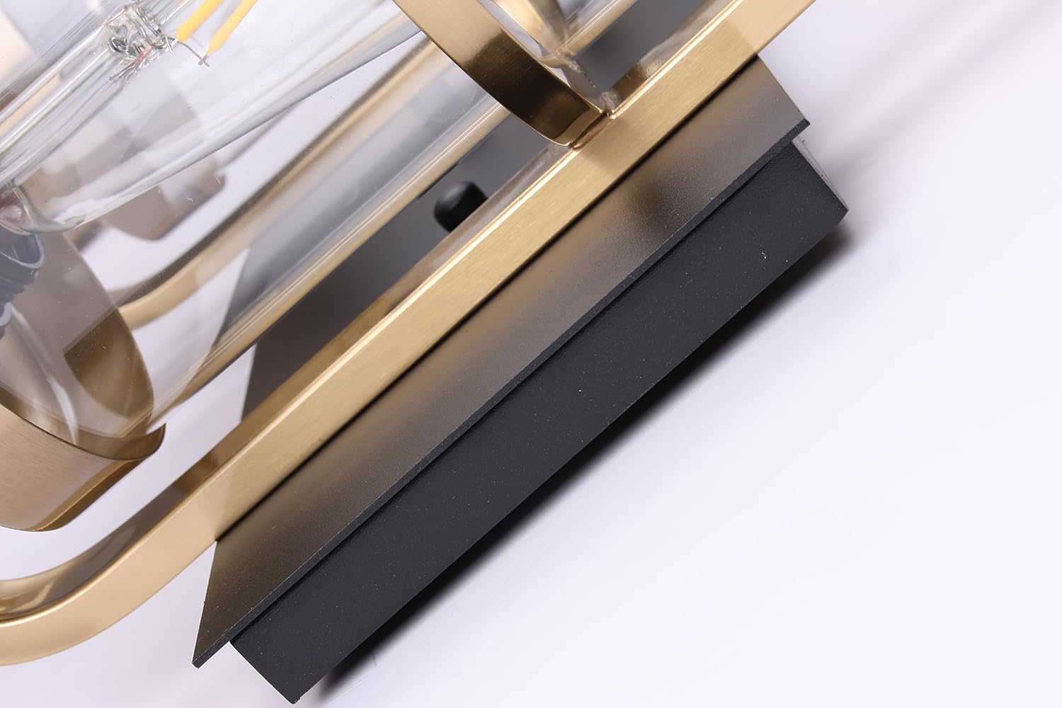 - ♥Product Feature: Hardwired.Black gold bathroom light fixture with clear glass shade;Modern Wall Sconce lighting is easy to install and can be mounted as either up light or downlight.