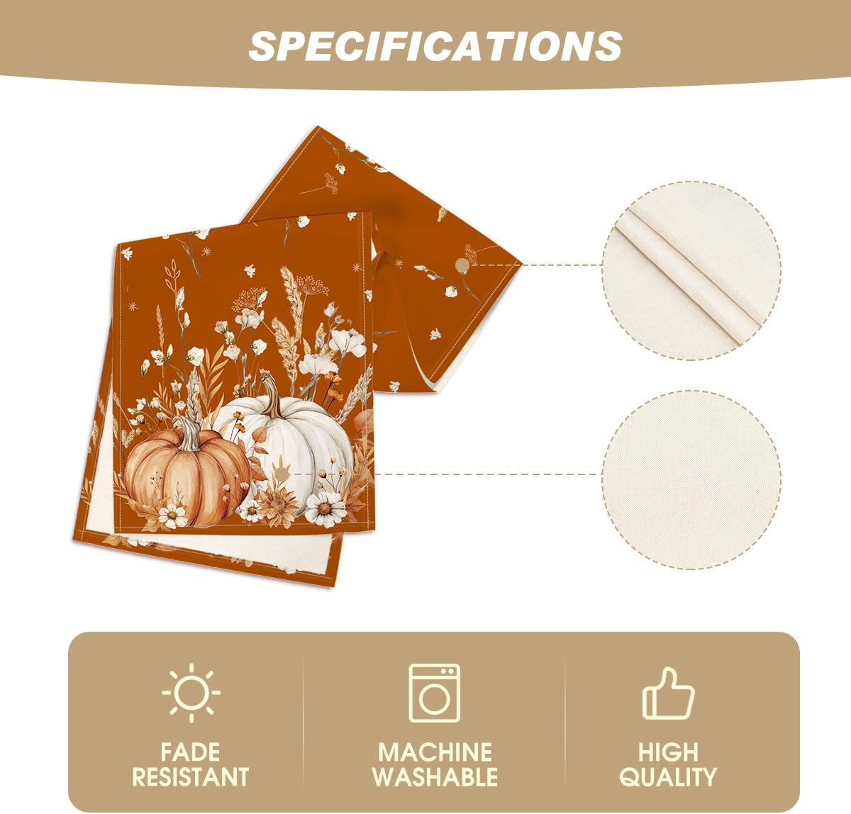 Artoid Mode Orange Pumpkins Leaves Flowers 210 GSM Fall Table Runner, Seasonal Autumn Kitchen Dining Table Decoration for Home Party Decor 13x120 Inch