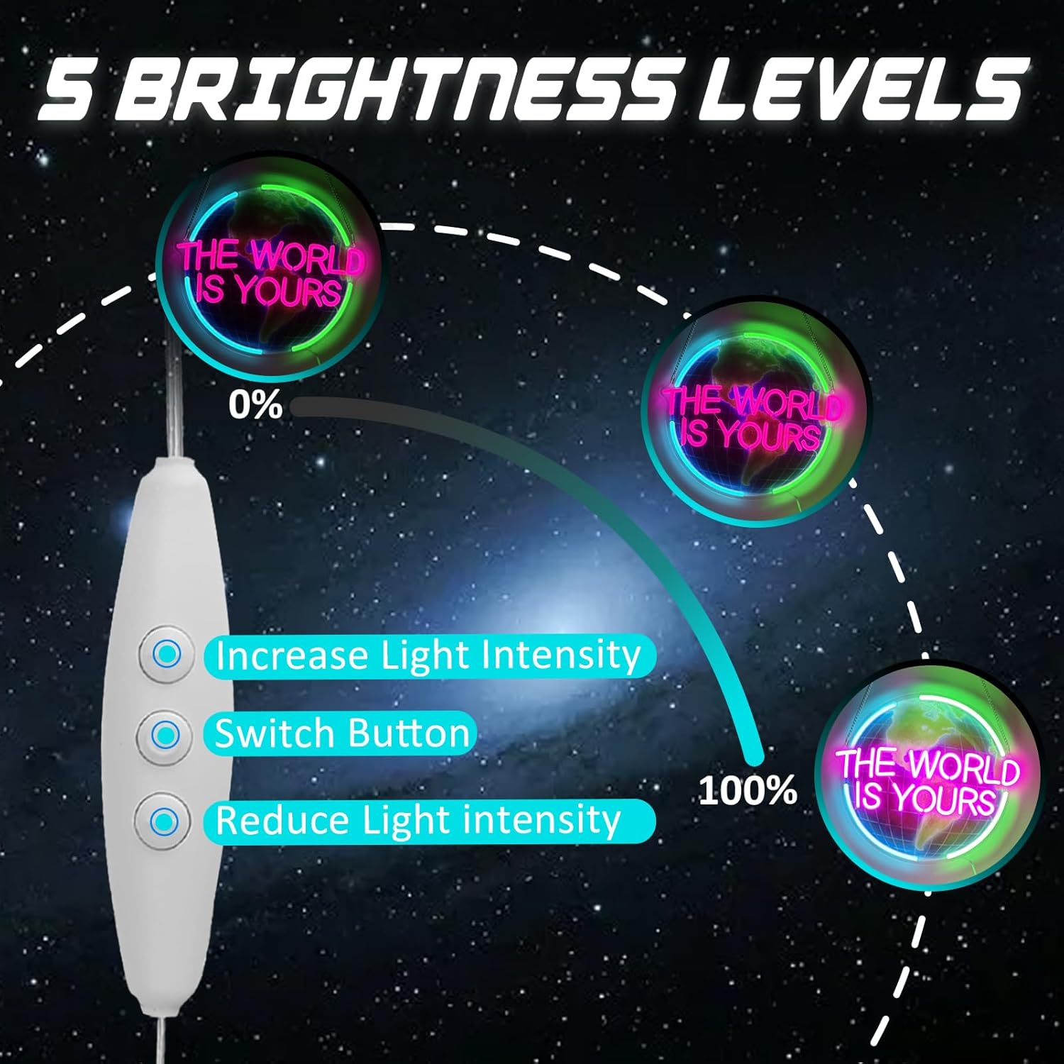 The World Is Yours Neon Sign for Wall Decor, Earth Neon Light with Dimmer, for Man Cave Boy Room Decor, Gift for Man Boyfriend, Decoration USB Powered with Switch
