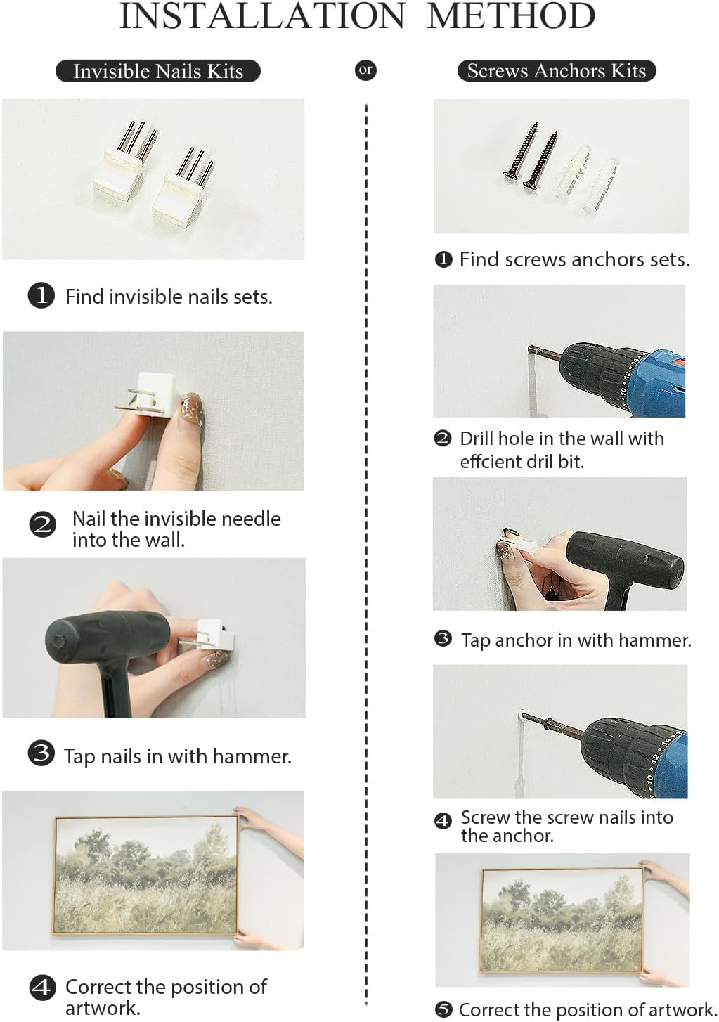 - EASY TO HANG: The frame comes with 2 invisible nails hanging hardware, simplifying the process of adorning your walls. Whether you choose to create a gallery wall or let it stand alone as a focal point, our frame makes the entire process effortless