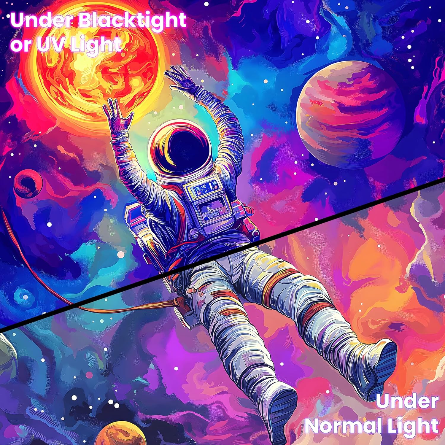 BVBOX Astronaut Space Blacklight Tapestry 79"x59", UV Reactive Floating Astronaut Universe Galaxy Planet Glow in Dark Tapestries, Black Light Neon Upright Poster Wall Hanging Backdrop Decor for Bedroom Living Room