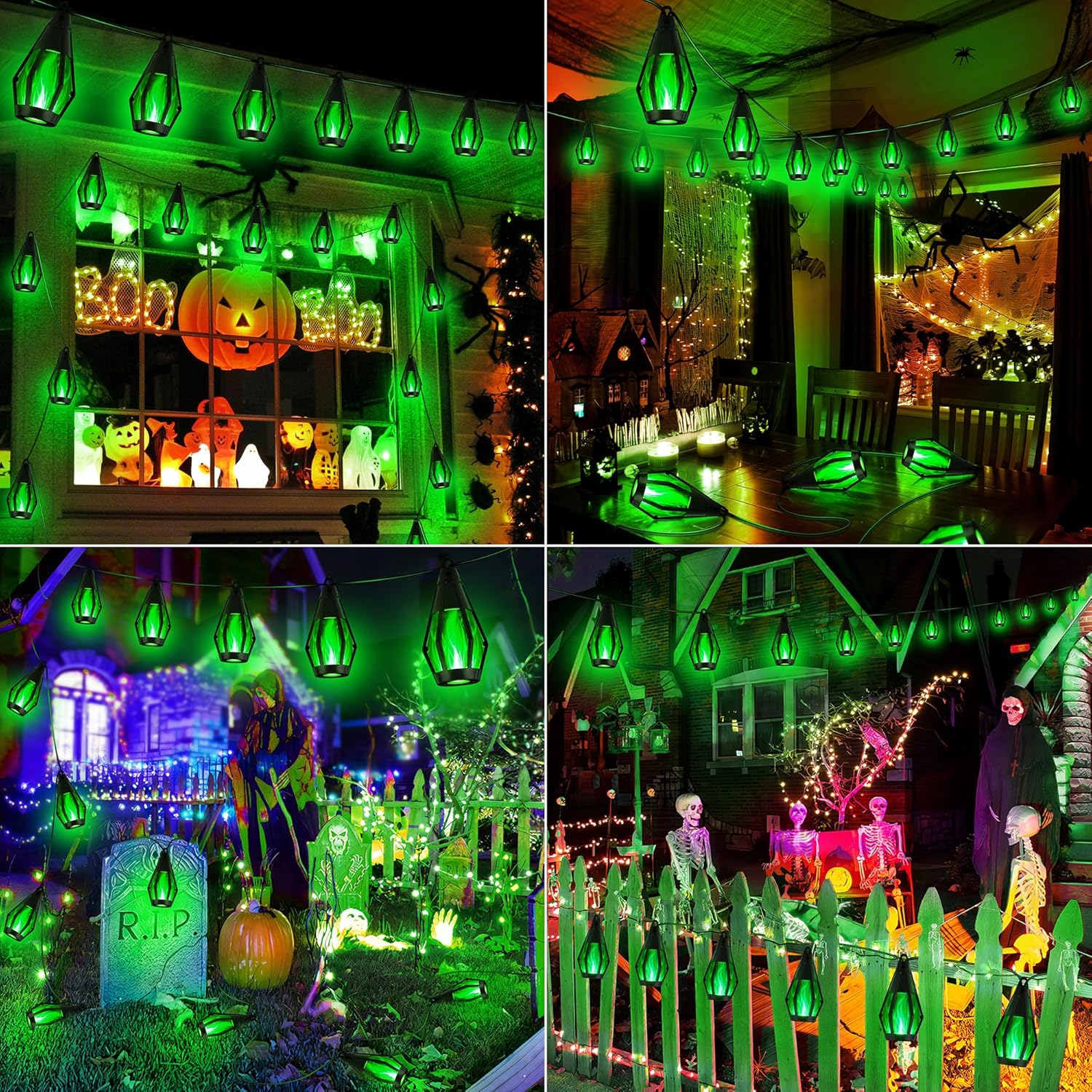 - Flickering Dancing Flames String Lights: iBaycon solar Halloween string lights feature a stunning dancing flame design, offering a realistic flame effect that adds a charming ambiance to any setting