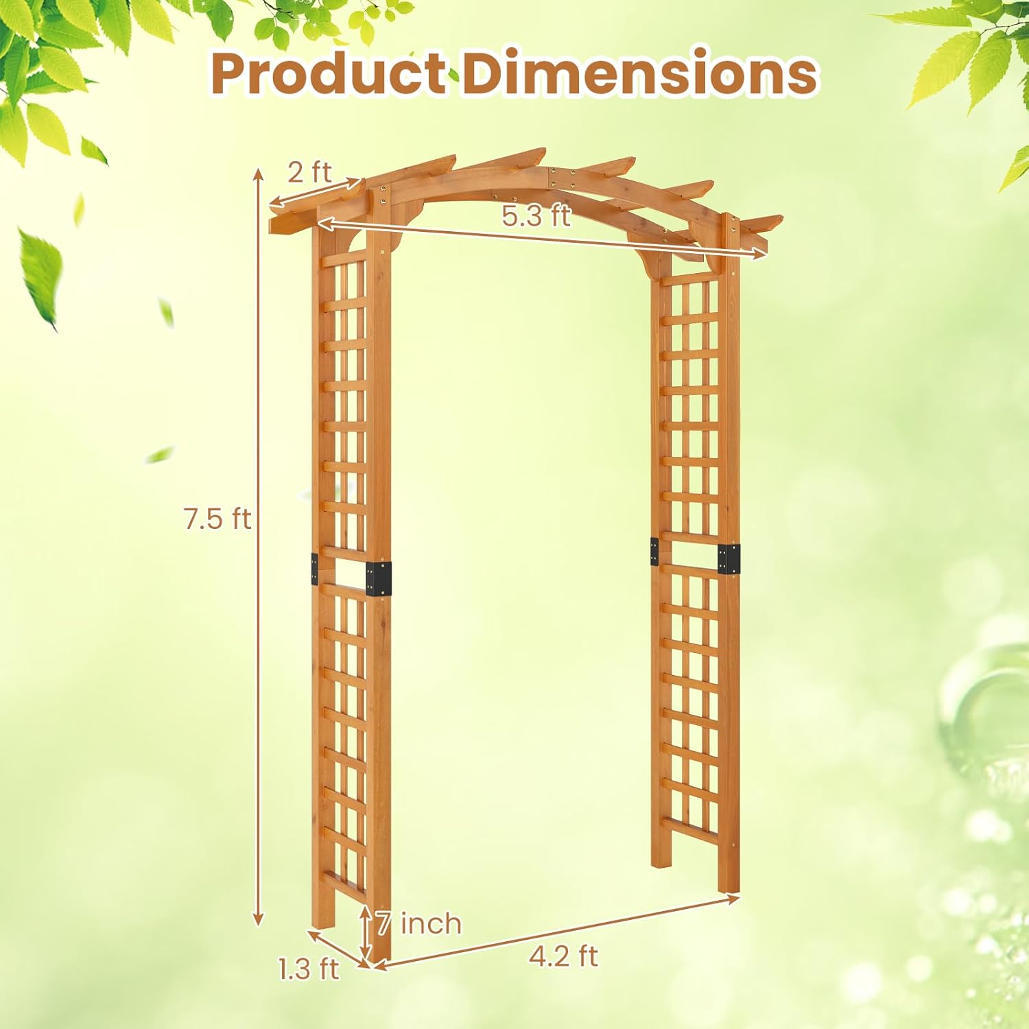 - [Natural Fir Wood]: Crafted from high-quality natural fir wood, this garden arbor blends rustic elegance with lasting durability. The wood is coated with a protective, weather-resistant finish to withstand outdoor elements.