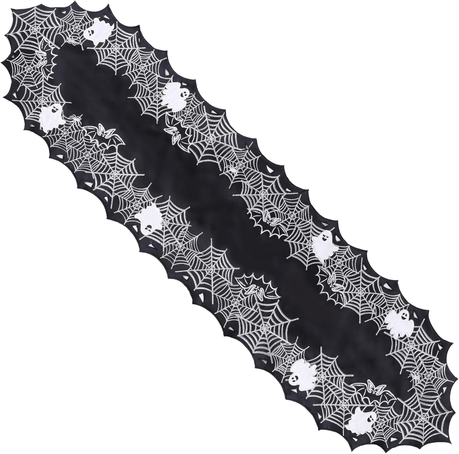 Chlophy Halloween Table Runner Black Spider Web Table Runner Gothic Embroidered for Kitchen Dining Halloween Décor Home Party Table Decoration 54in