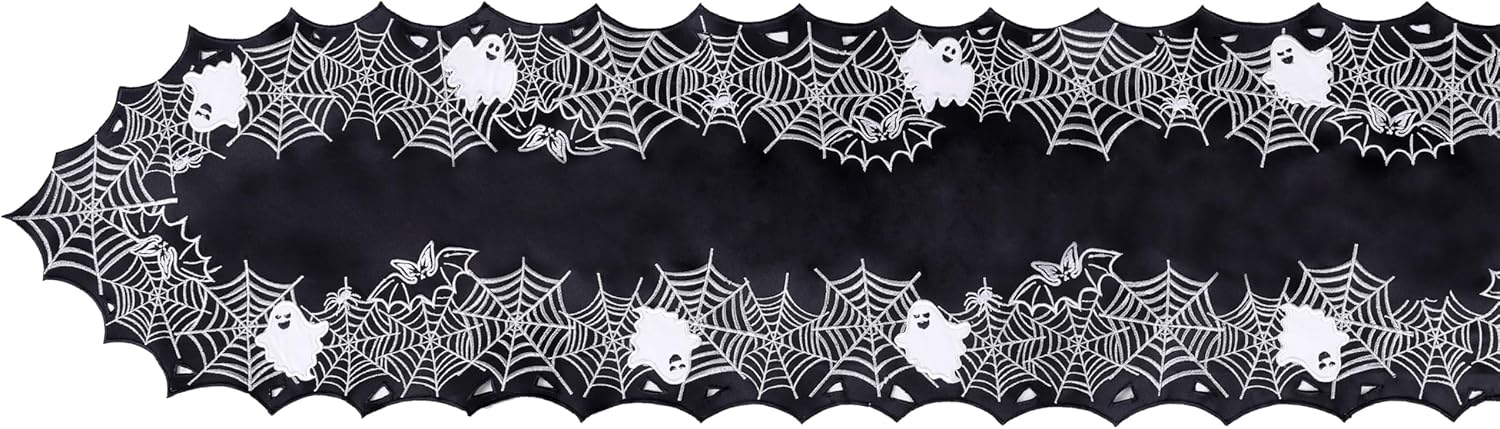 - 🖤 Versatile Seasonal Accent – Whether you're going for a chic gothic look or full-on haunted mansion vibes, this embroidered spiderweb table runner ties your Halloween décor together in a fun yet refined way