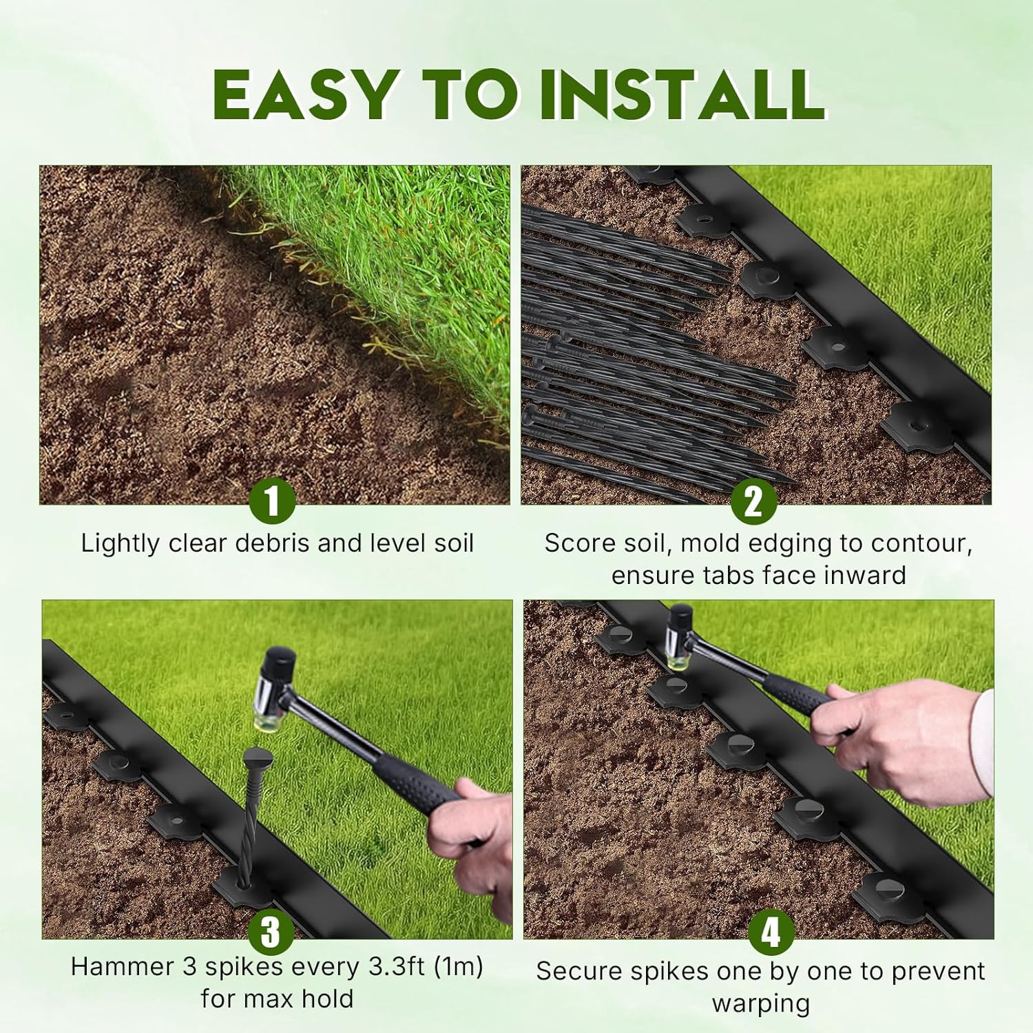 No Dig Landscape Edging 4" x 98.4FT Kit, Plastic Edging for Landscaping with 100 Spikes for Garden, Lawn, Flower Beds and Yard