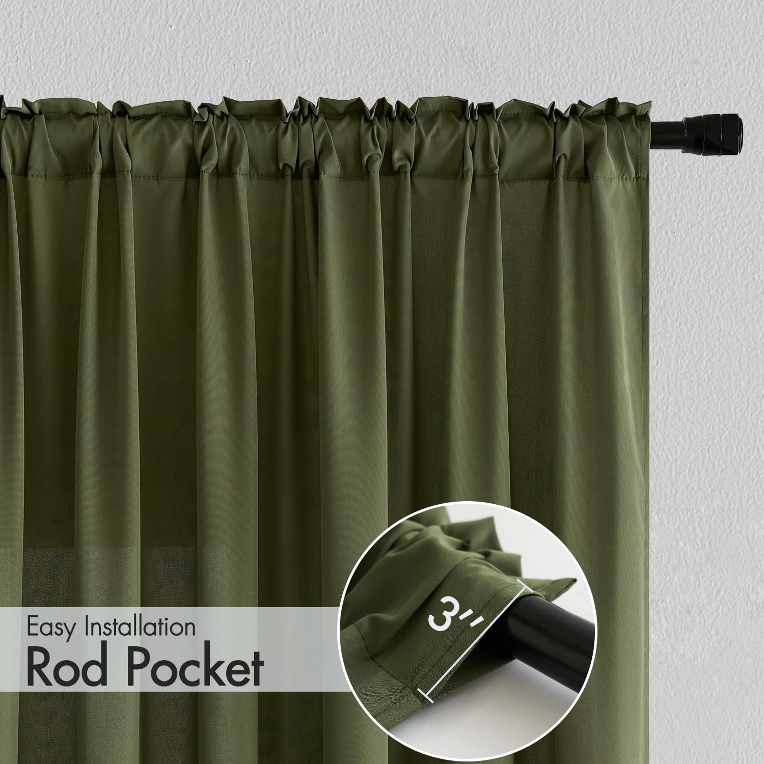 MIULEE Olive Green Privacy Sheer Curtains That Let Light in 96 Inches Long Non-See-Through Semi Sheer Curtain Light Filtering Window Curtains Drapes for Living Room Bedroom 2 Panels Set 42 X 96