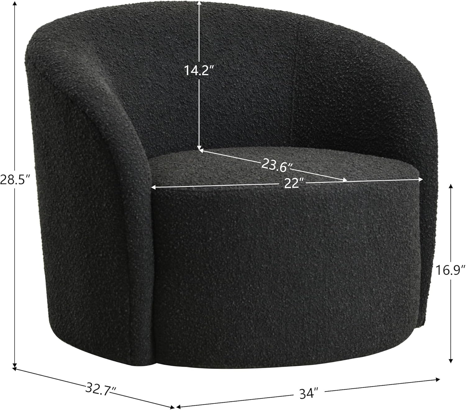 KINWELL 34" W Mid Century Modern Swivel Barrel Chair, Round Upholstered Boucle Swivel Accent Chairs, No Assembly Sofa Chair for Living Room Bedroom Reading Apartment Lounge Nursery(Black)
