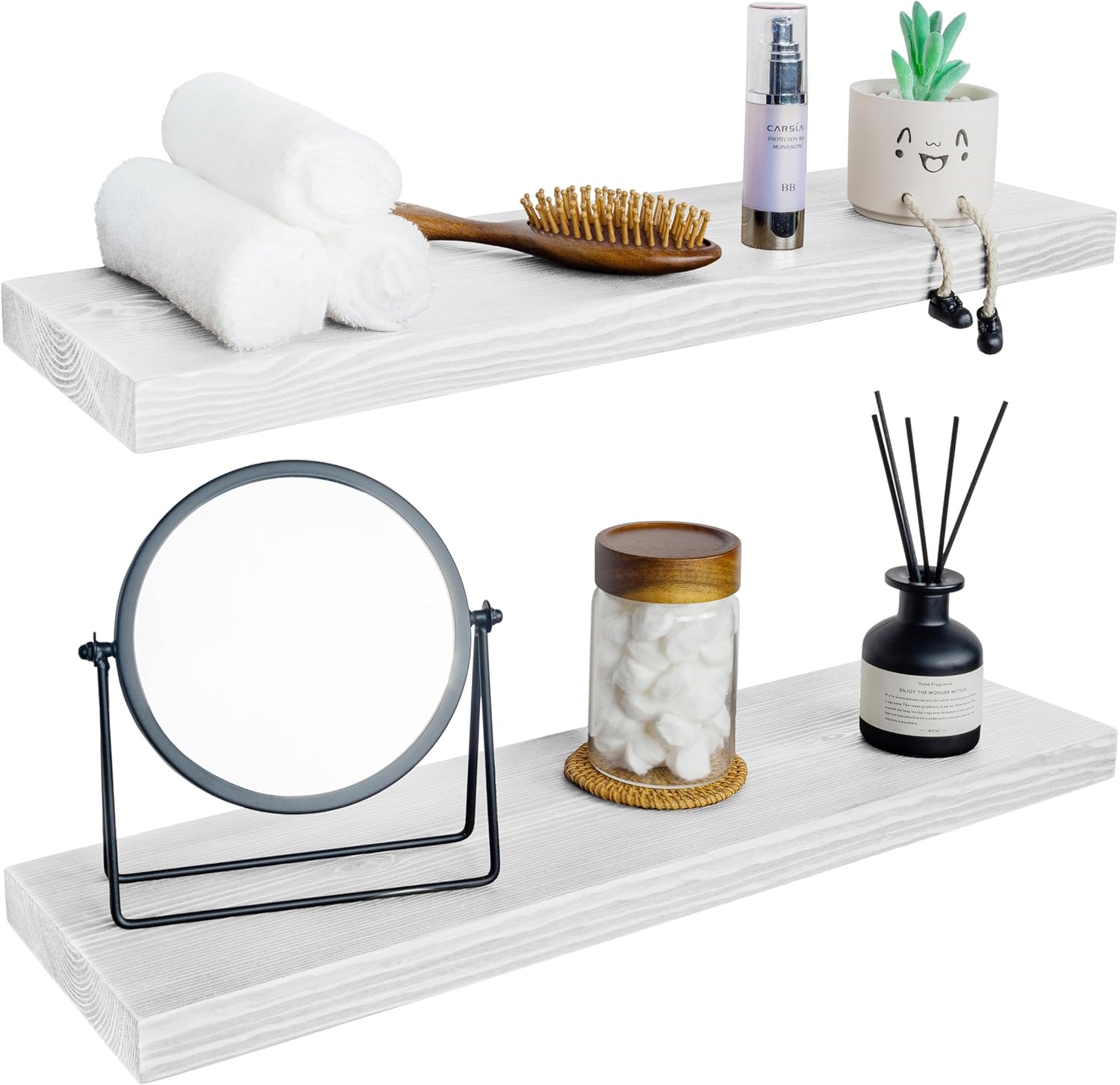 - MODERN RUSTIC LOOK - The 30 inch floating shelves are made of natural pine, and the wood has different nodes and grains, so the color of each shelf may be slightly different, but equally stunning