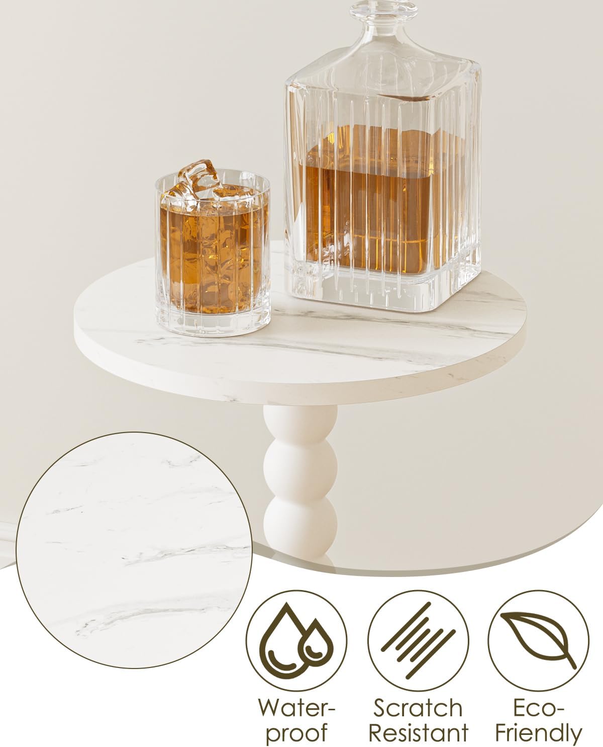 Masupu Round Side Table, Small Drink Table for Small Spaces, Pedestal End Table with Solid Wood Leg for Living Room, Bedroom, Corners(Marble White)