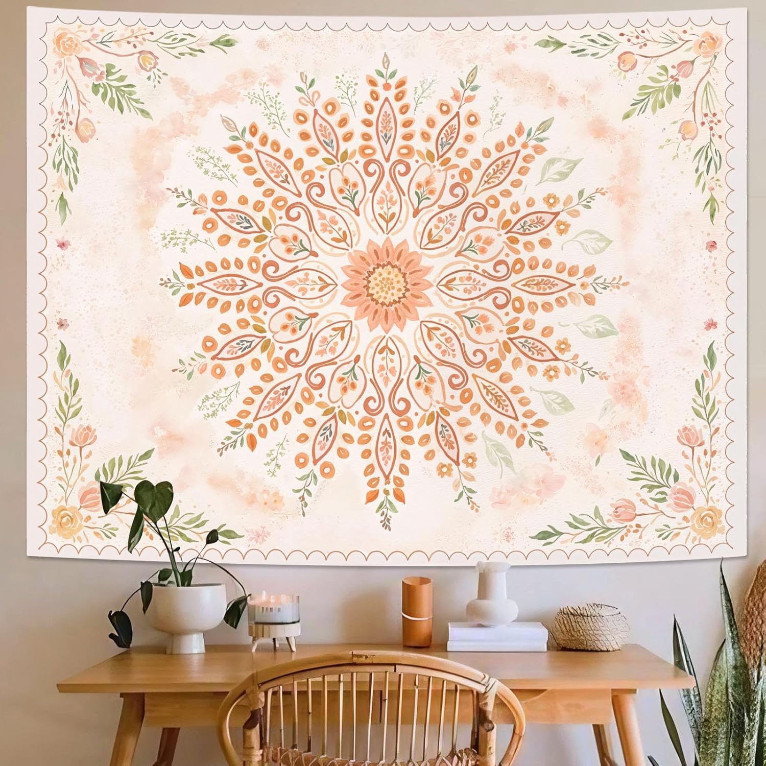 Lunerfex Floral Mandala Tapestry Boho Tapestry for Bedroom Peach Tapestries Wall Hanging Living Room Wall Art and Home Decor 44x60