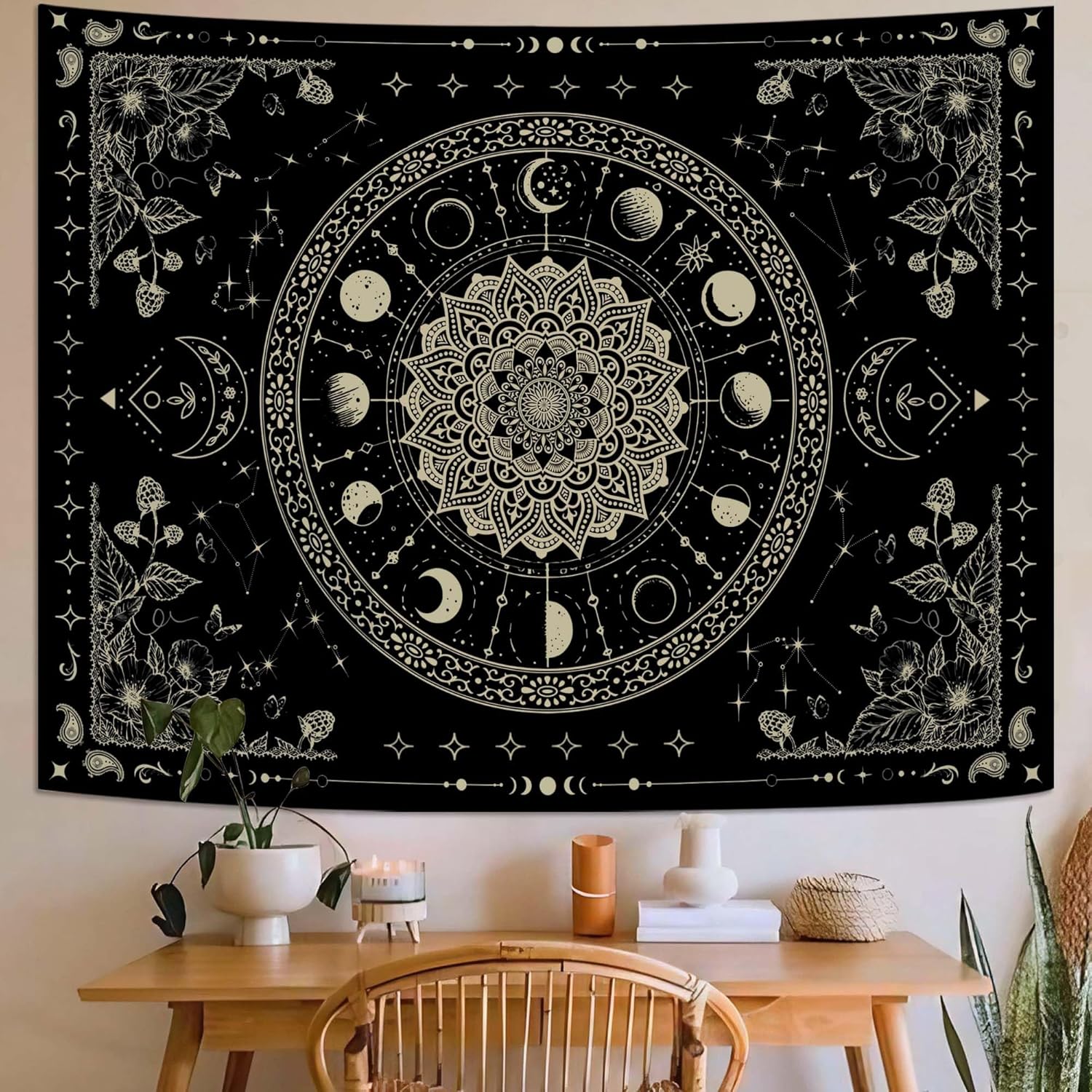 - Unique Mandala Moon Design: This Lunerfex tapestry features an intricate mandala design combined with cosmic elements, creating a mysterious and artistic touch for your bedroom or living room.