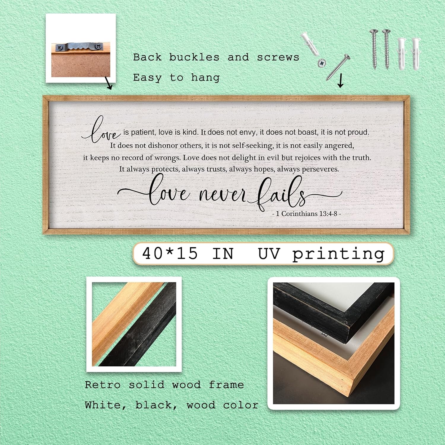 LuZhiQiang Love is Patient Love is Kind Wall Decor 40"X15" Bible Verse Quote 1 Corinthians 13 For Bedroom Above Bed Christianity Couple Sign Large Wood Framed Wall Hanging Art (Wood)