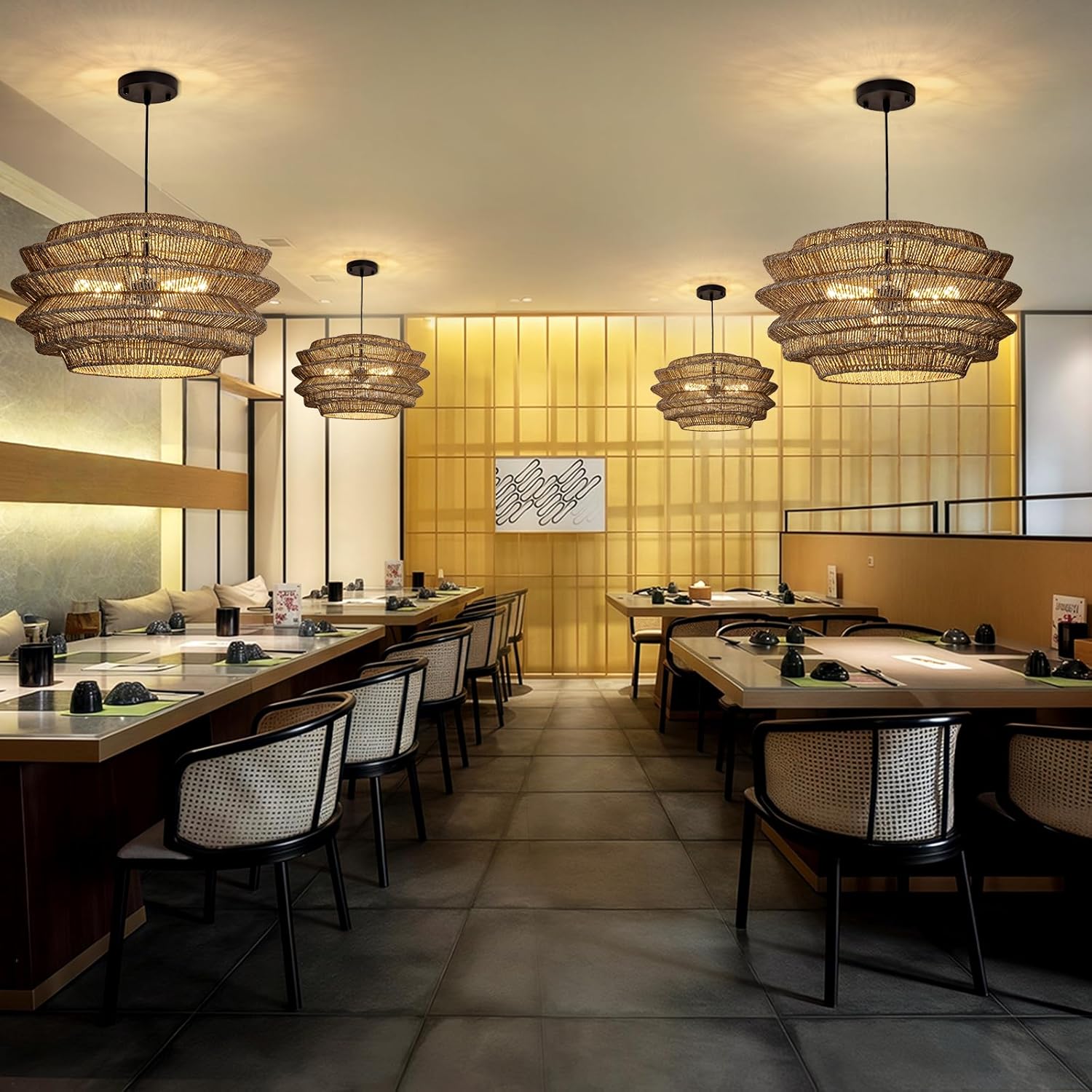 - 【Excellent Design】Natural water plants rattan weave craft, the pendants are made of natural materials. The lights are hand woven with by rattan craft superb skills Seagrass Rattan artists. Decorated with classic tropical style elements, creates a wonderfully new look