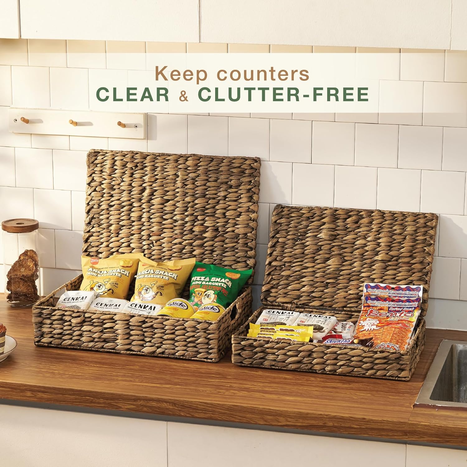 - Instant Clutter Control: These woven baskets with lid are perfect for quickly tidying up any space. Effortlessly conceal clutter and maintain a neat, organized look in your living room, bedroom, bathroom, or office.