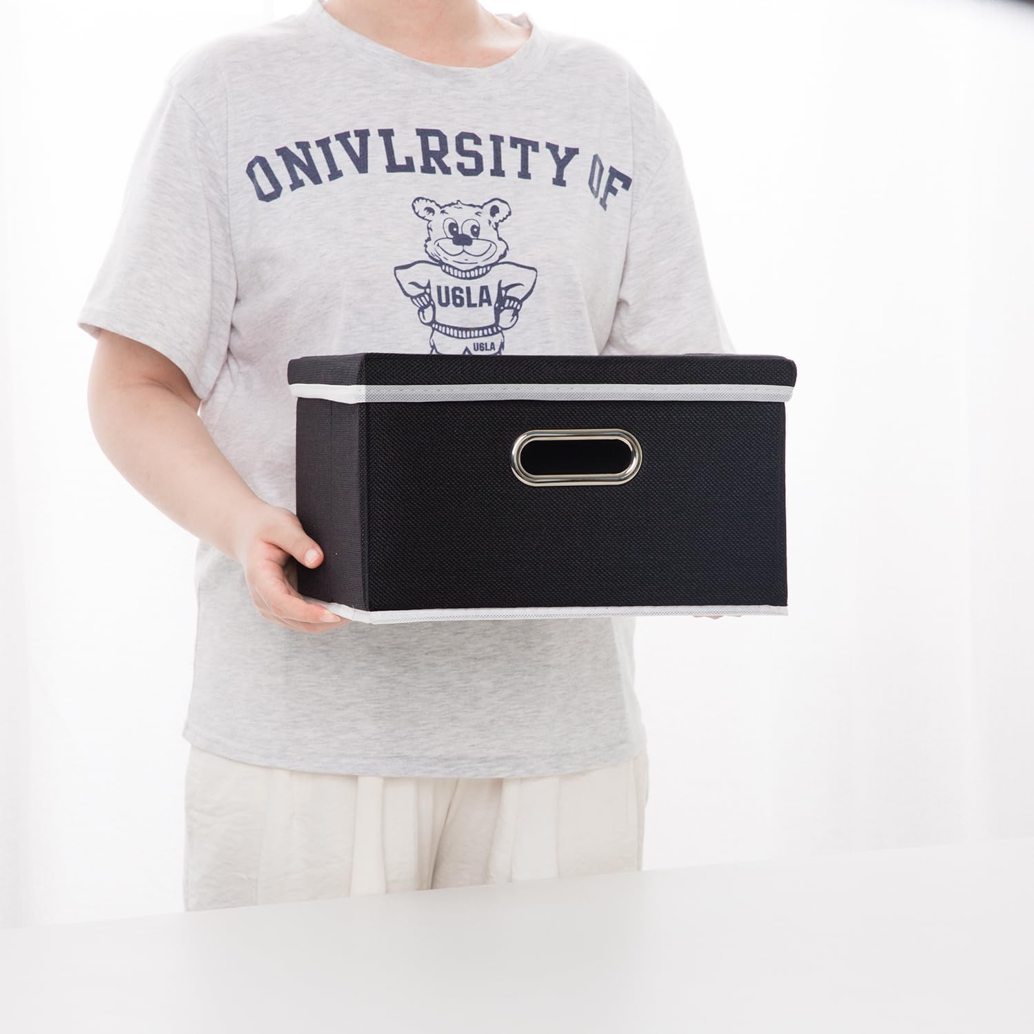 PRANDOM Storage Boxes with Lids [3-Pack] Fabric Collapsible Storage Bins Organizer Containers Baskets Cube with Cover for Home Bedroom Closet Office Nursery Black(11.4X8.6X6.7