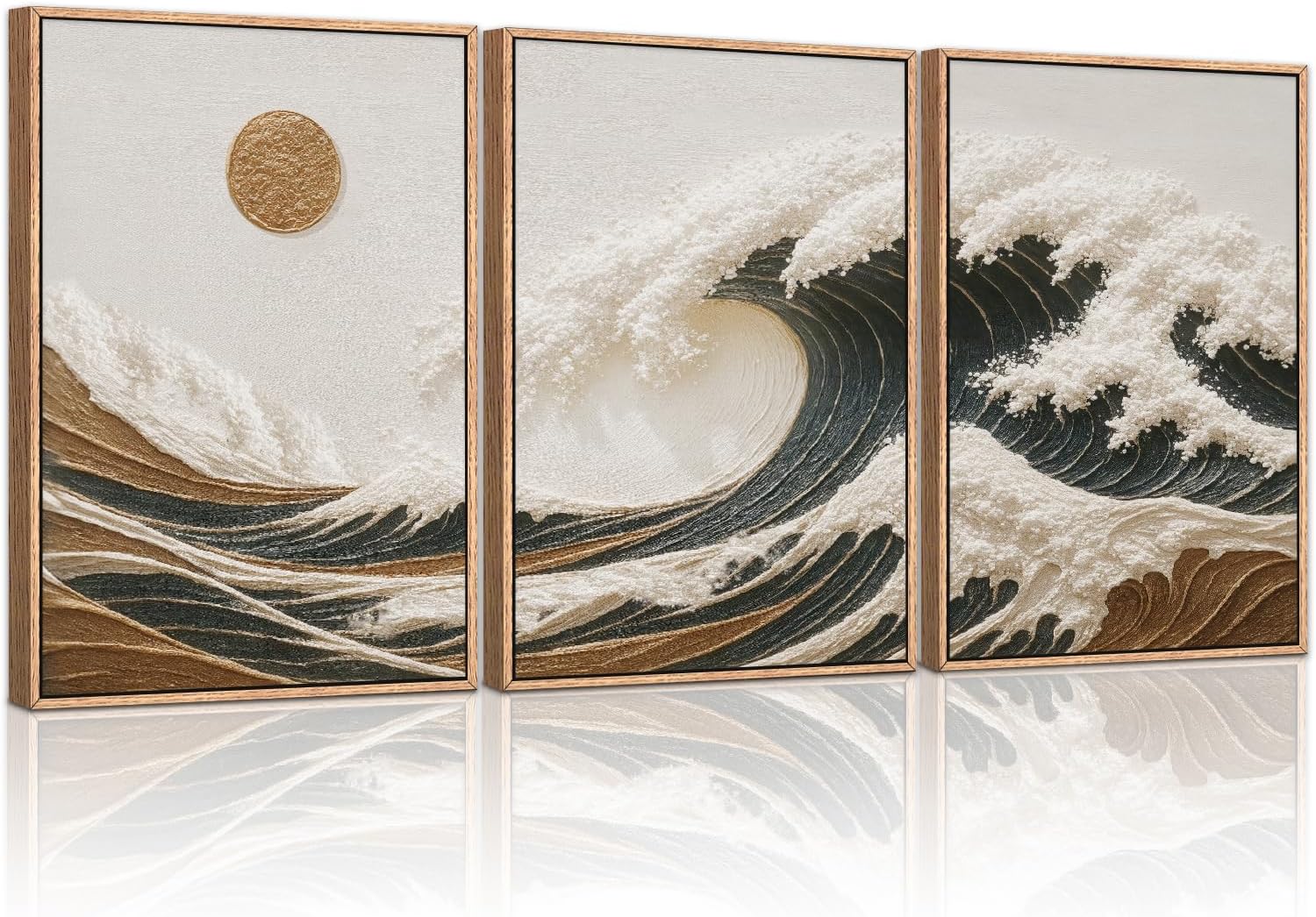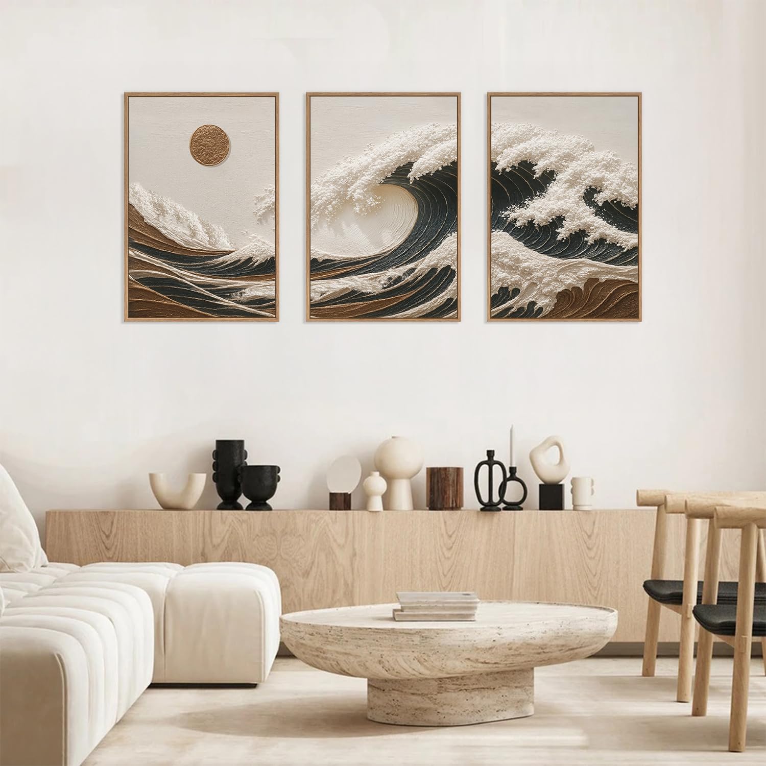 - 【Ocean Waves Wall Art】Elevate the atmosphere of your home with the HLNIUC ocean waves decorative paintings, featuring an artistic atmosphere and modern style, with a soft and retro overall tone, and the cleverness of the waves and the sun gave your space a unique stylish yet elegant atmosphere.Each print is expertly framed and ready to hang, making it a focal point in any room.