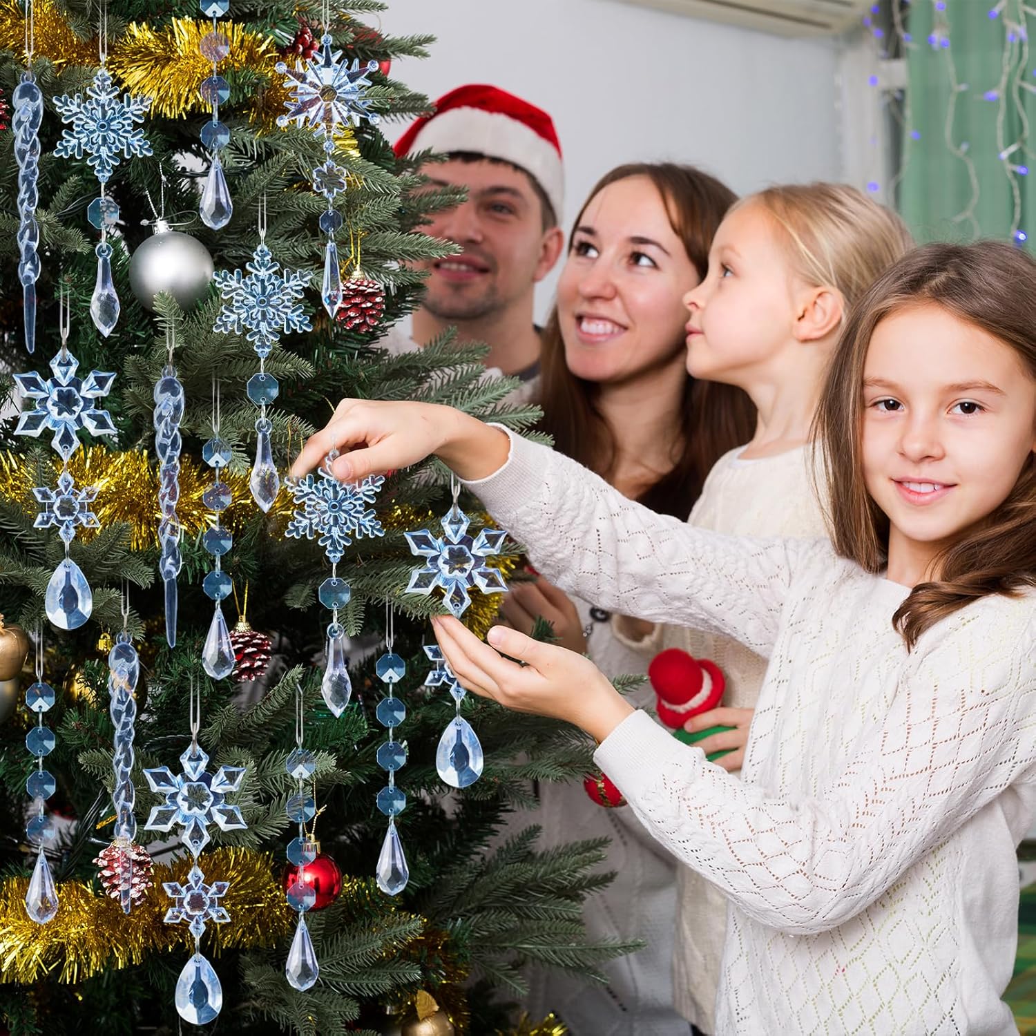 - Premium Material: These Christmas hanging crystal snowflake ornaments are well made of tested high quality acrylic material, safe for kids or pets, sturdy and shatterproof, lightweight, clear and smooth, durable for indoor or outdoor uses, save and reuse them for next Christmas.