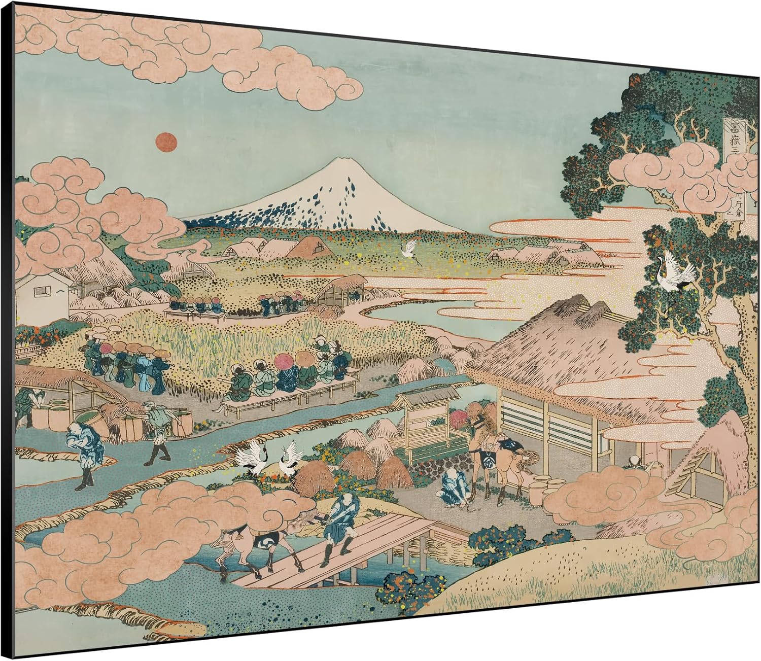 SIGNWIN 60"x72" Extra Large Framed Wall Art Japanese Ukiyo-e Landscape, Timeless Mt. Fuji Scene for Zen-Inspired or Asian-Style Interiors for Home Living Room Bedroom Decor (Frame Assembly Required)