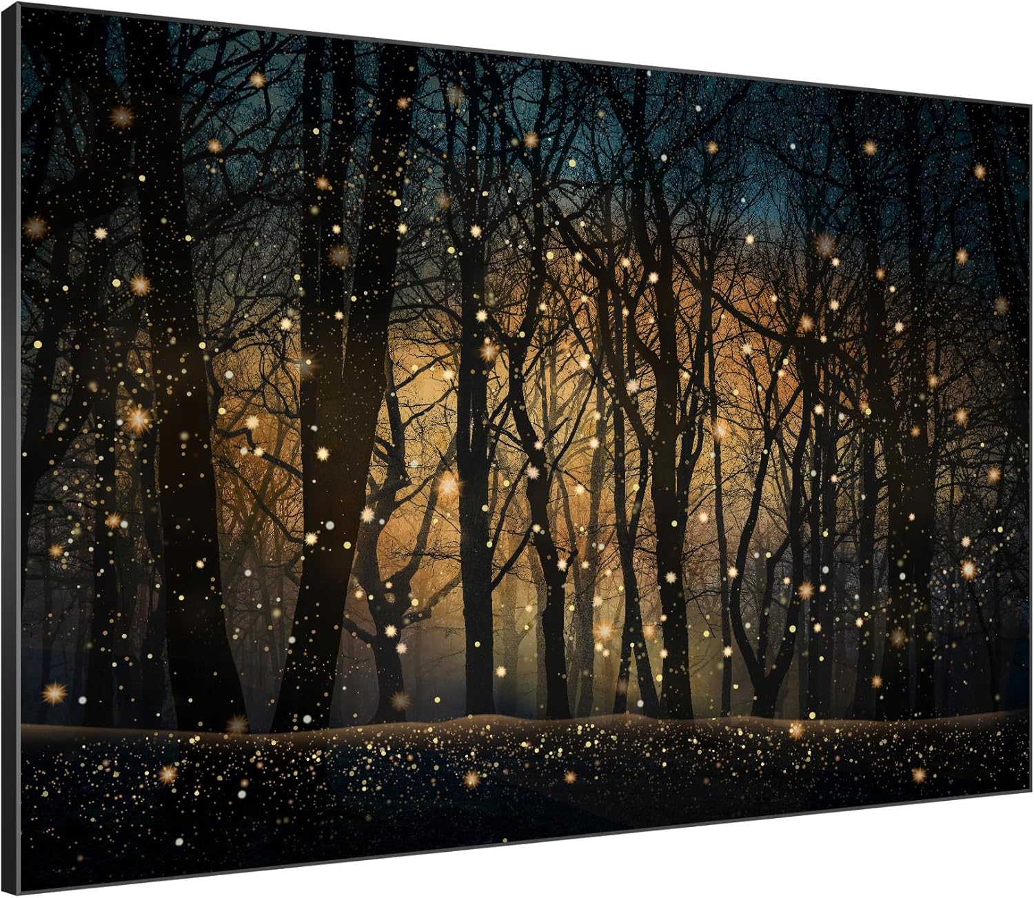 SIGNWIN 36"x46" Extra Large Framed Wall Art Magical Firefly Night Forest, Enchanted Woodland Scene for Home Living Room Bedroom Decor (Frame Assembly Required)