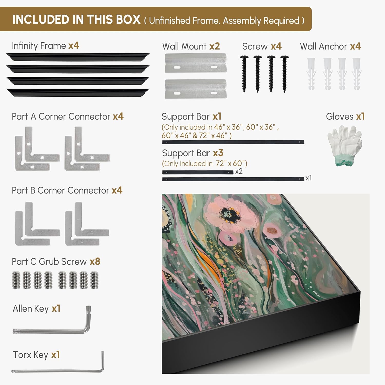 - Assembly Required: The artwork comes with the frame components unassembled. Don’t worry — setup is straightforward and tool-friendly. For best results and accurate alignment, we recommend two people to ensure a smooth assembly and a stable, secure wall mount.