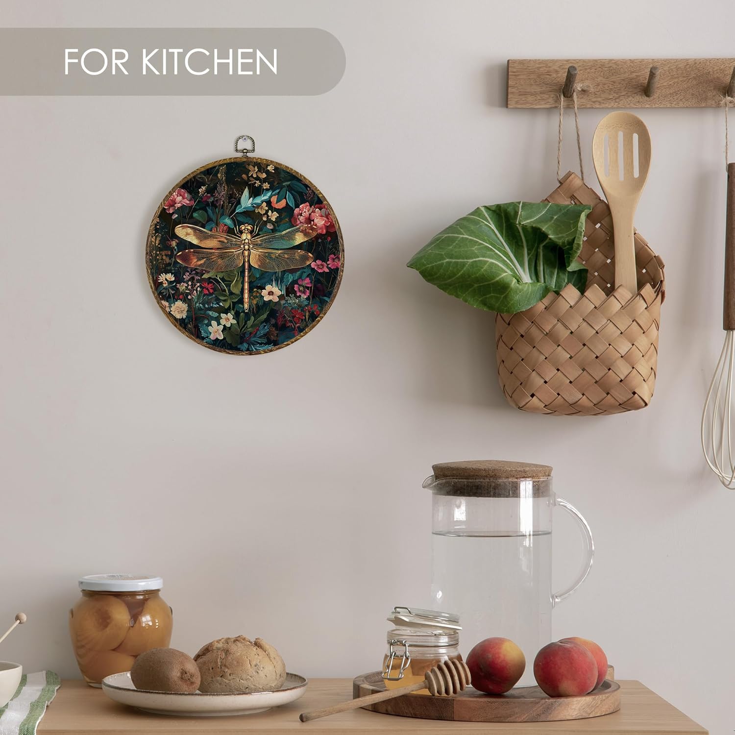 Fewgb Vintage Dragonfly Round Wall Art Decor Framed for Gallery Bedroom Living Room Kitchen Bathroom, Dark Black Floral Canvas Wall Art Prints Picture, Flower Hanging Room Decor Artwork 10x10