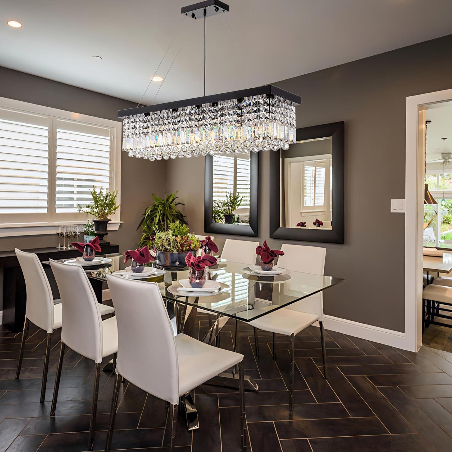 - EASY INSTALLATION: This rectangle modern chandelier comes with all necessary mounting hardware and a detailed instruction manual for quick, hassle-free setup. The user-friendly design and secure packaging ensure that each crystal arrives intact โ your new chandelier will be ready to shine in your foyer, dining area, or kitchen with minimal effort.