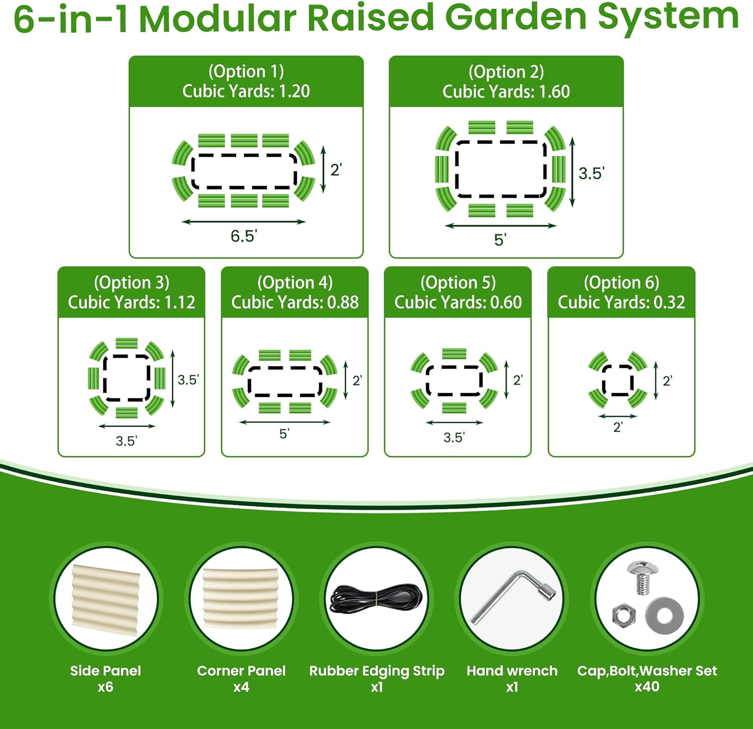 - Modular Raised Garden Bed:Our 6-in-1 modular kit means you can assemble one of 6 configurations,Pick your favorite one and then assemble your garden bed to fits your unique home garden space perfectly.