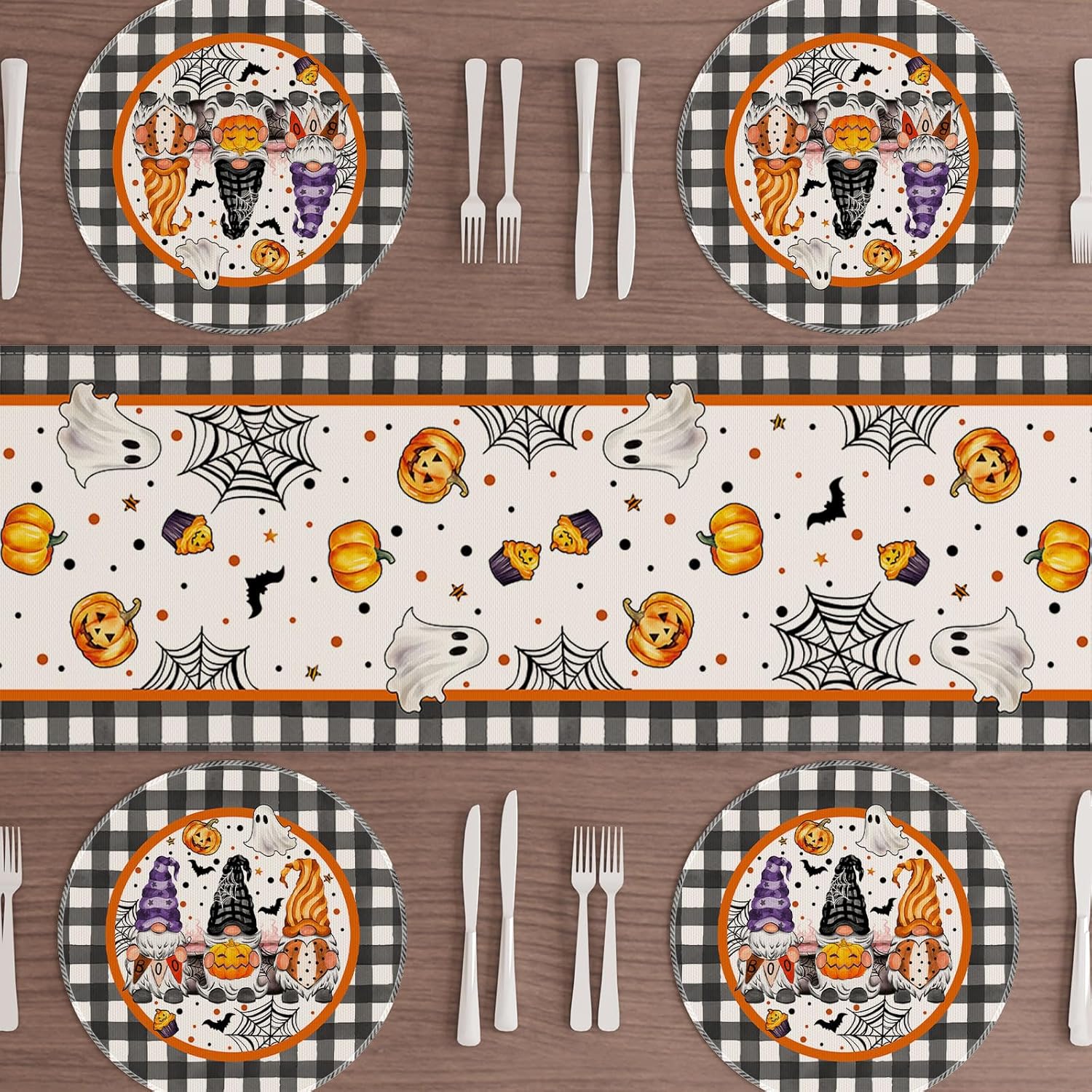 XCHI Spooky Boo Plaid Gnome Halloween Round Placemats Set of 4 Table Mats for Party Home Kitchen Dining Table Decorations 14x14 Inch