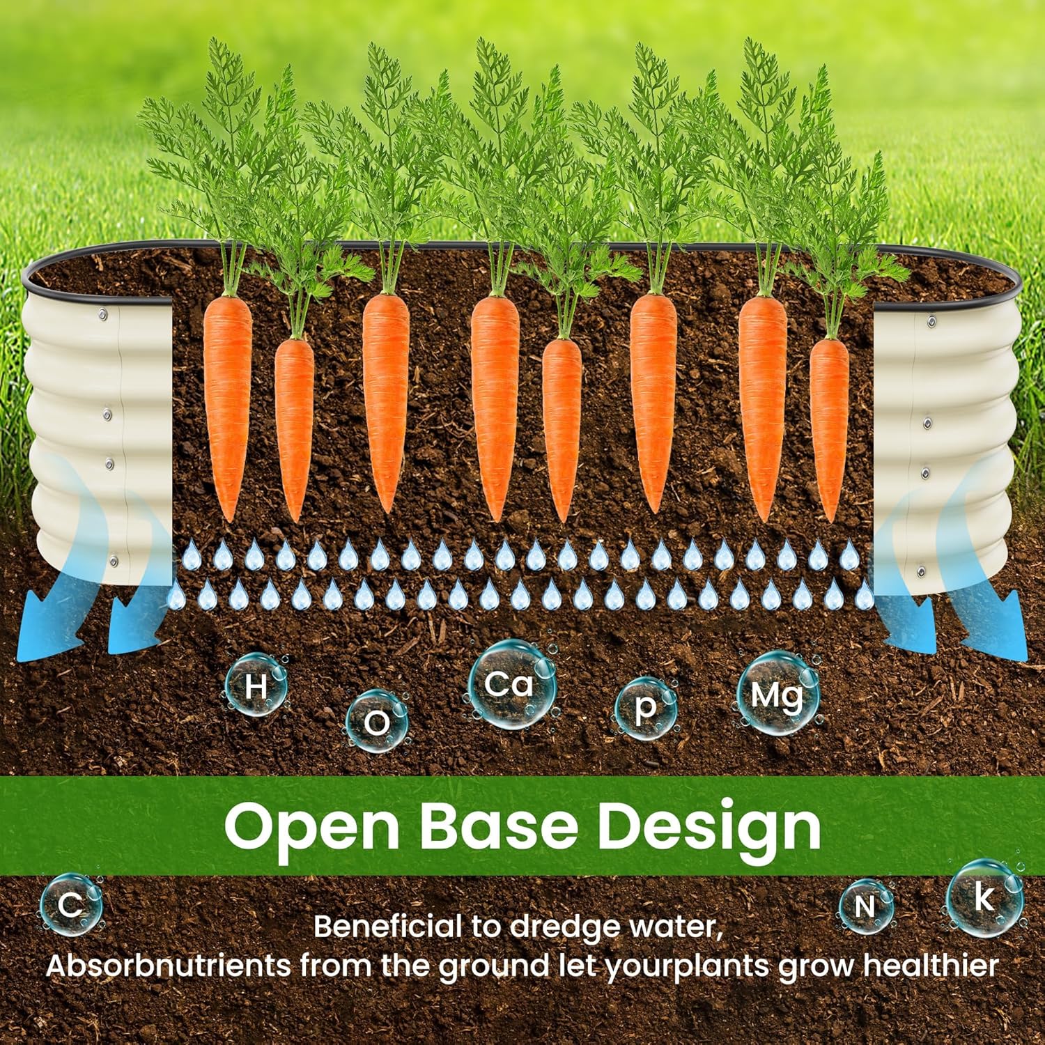 - Open Base Design:This metal raised garden bed is designed with an open base, makes this the perfect space to layer yard waste,grass clippings, fruits/veggies, or coffee grounds, to create enriched soil in your own backyard,It allow the roots absorb better nutrients, providing good drainage, and protect your plants.