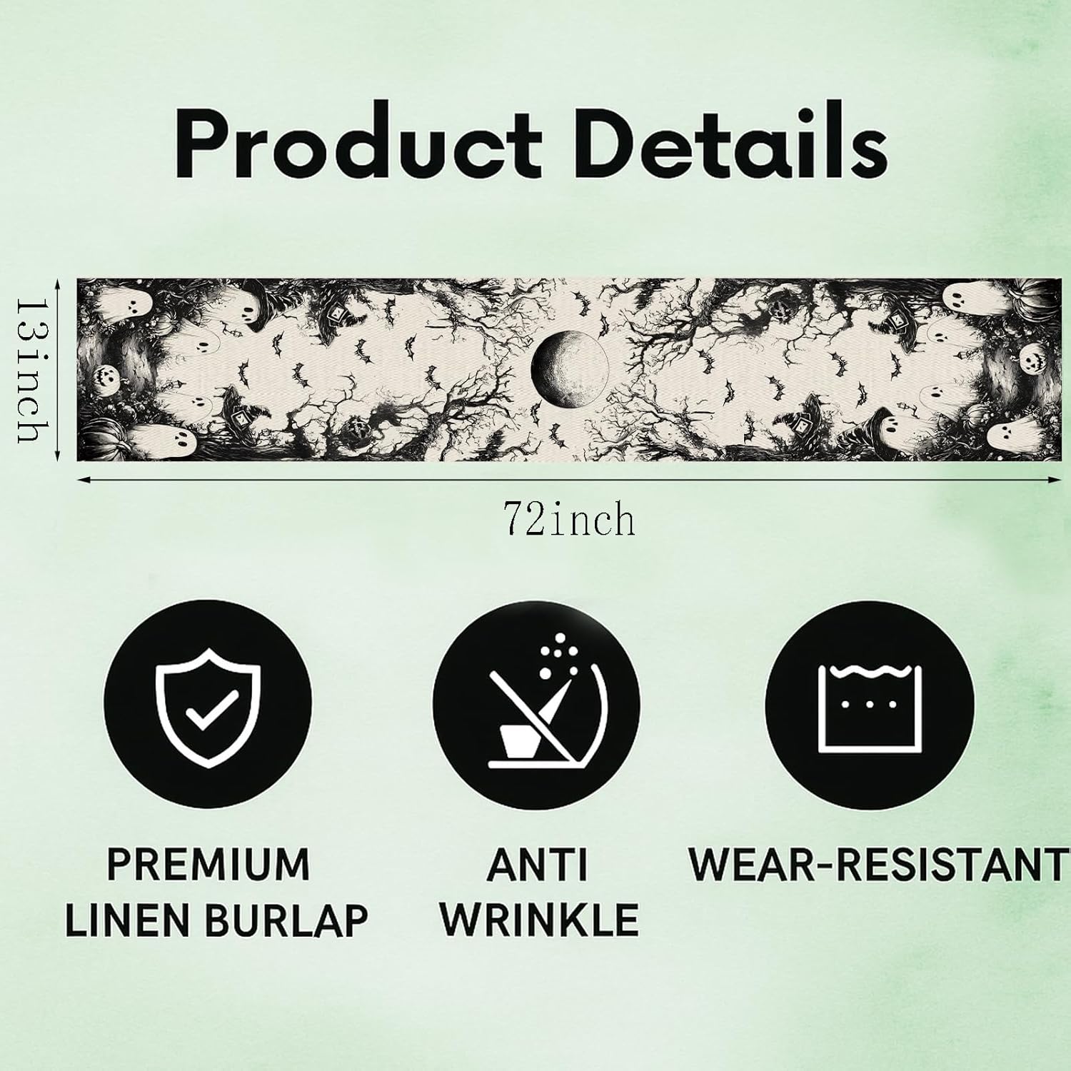 GPGHE Halloween Table Runner Black Ghost Holiday Burlap Table Decoration Indoor Outdoor Home Decor Party Supply 13 x 72 Inch