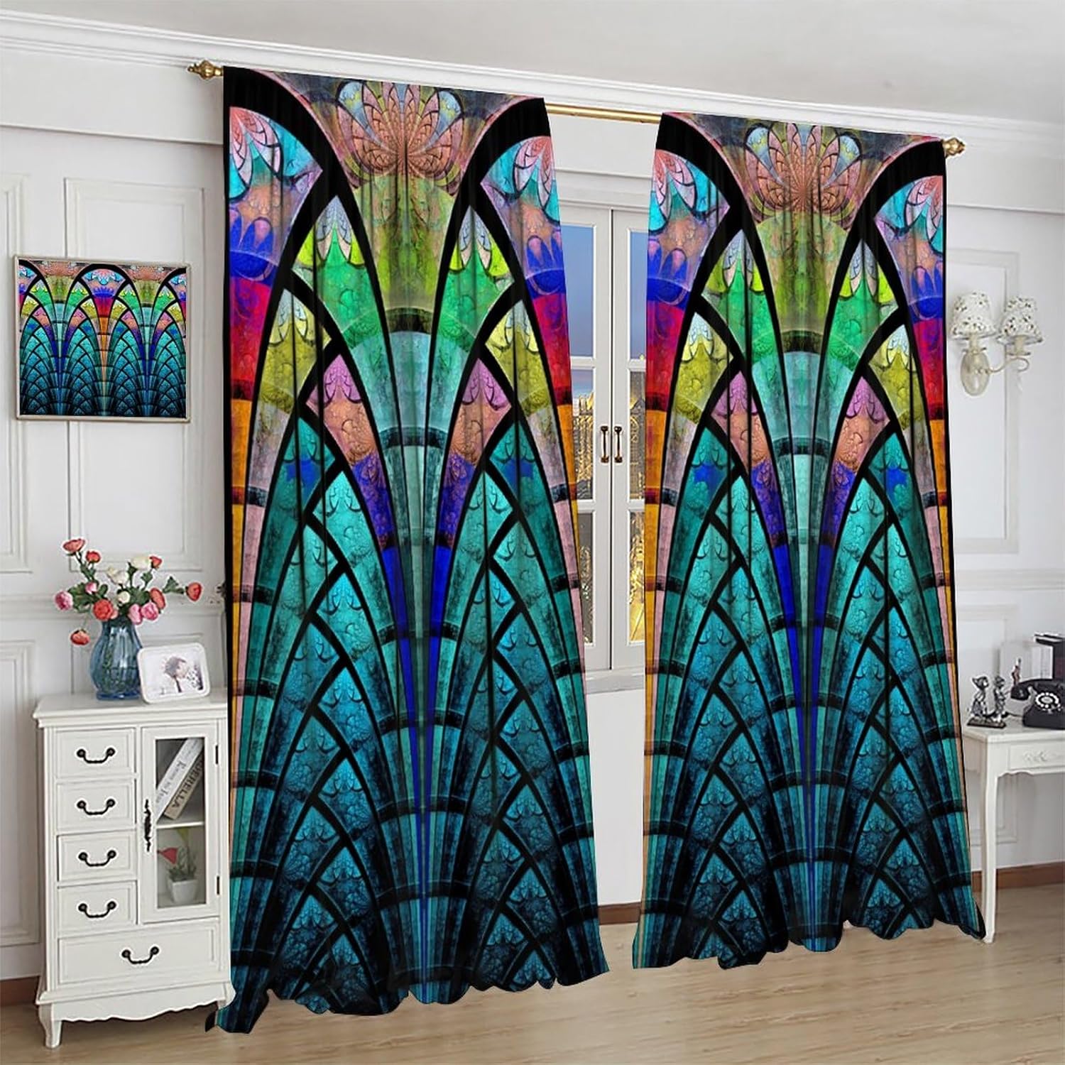 Stained Glass Curtains,Retro Design Style Colorful Abstract Art Home Decor Drapes for Bedroom Living Room Kitchen Window Treatment 2 Panels Set Total Size 42" W X 54" L Inch