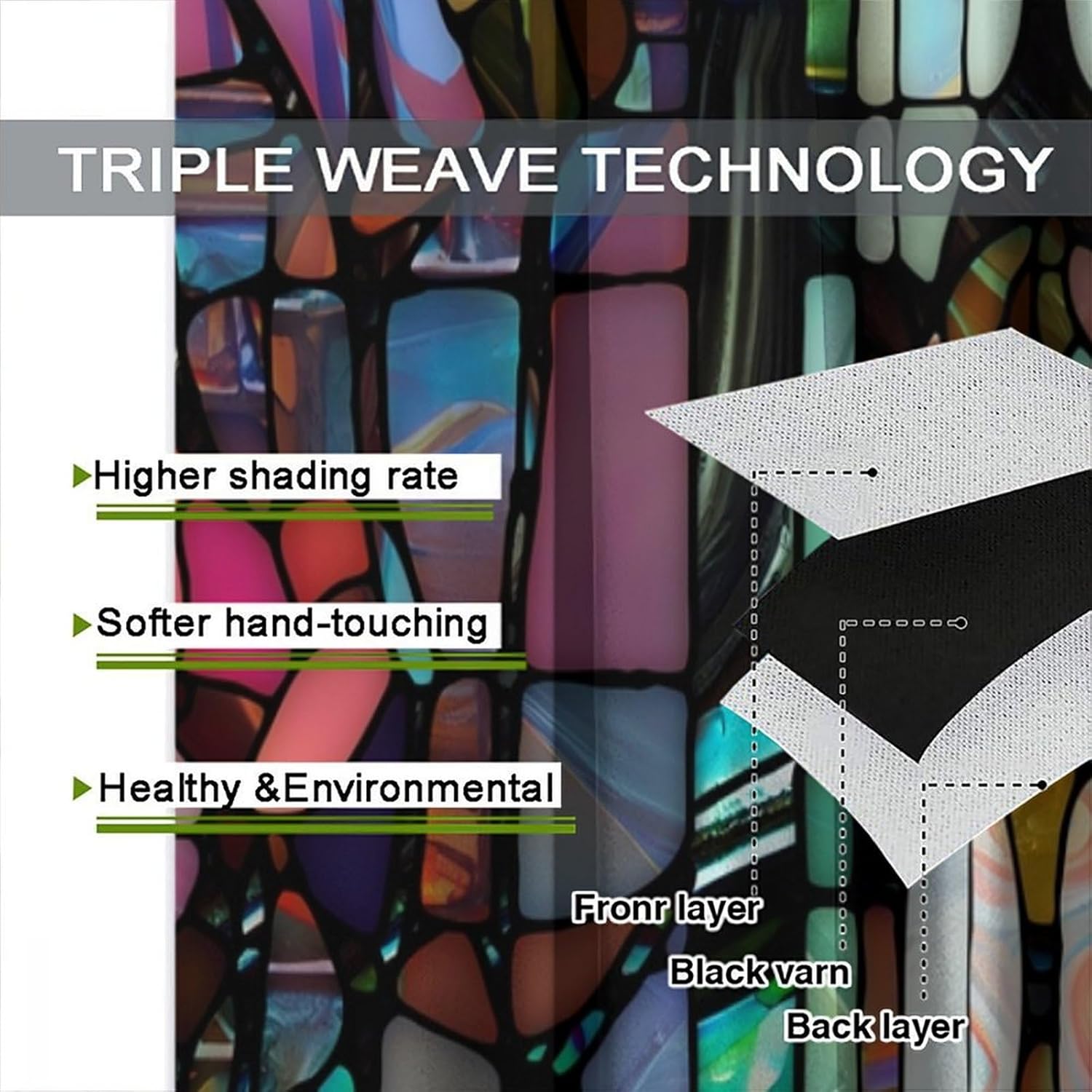 Stained Glass Curtains,Vintage Colorful Abstract Art Home Decor Drapes for Bedroom Living Room Kitchen Window Treatment 2 Panels Set Total Size 52" W X 84" L Inch