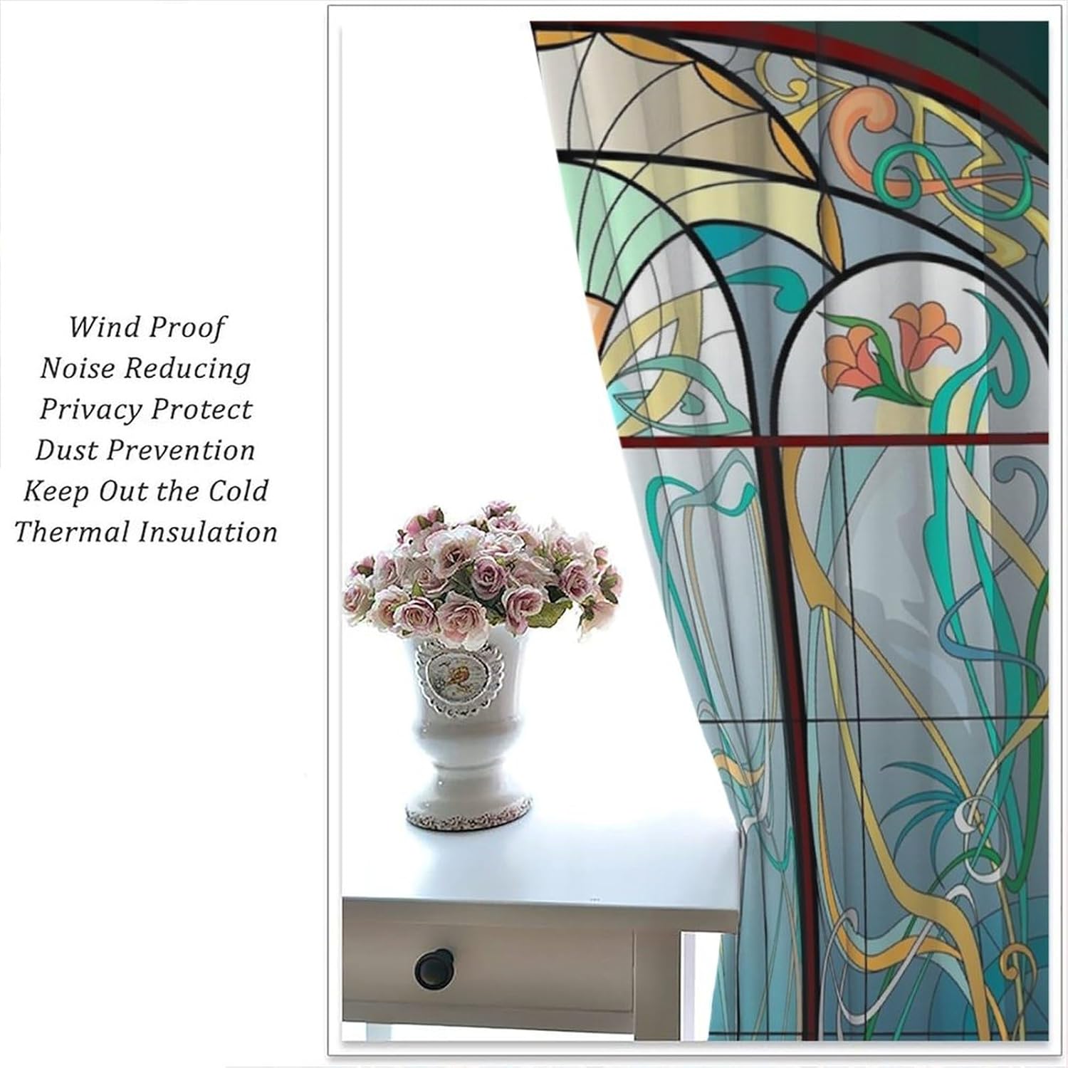 Stained Glass Curtains, Retro Mid Century Boho Abstract Art Home Decor Drapes for Bedroom Living Room Kitchen Window Treatment 2 Panels Set Total Size 42" W X 54" L Inch