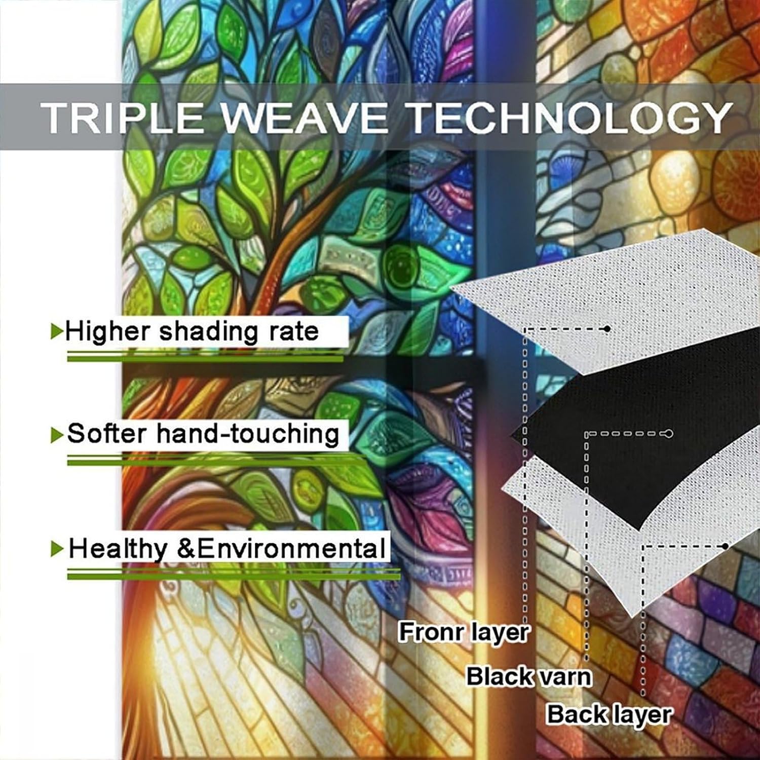 Stained Glass Curtains,Tree of Life Colorful Abstract Art Home Decor Drapes for Bedroom Living Room Kitchen Window Treatment 2 Panels Set Total Size 42" W X 63" L Inch