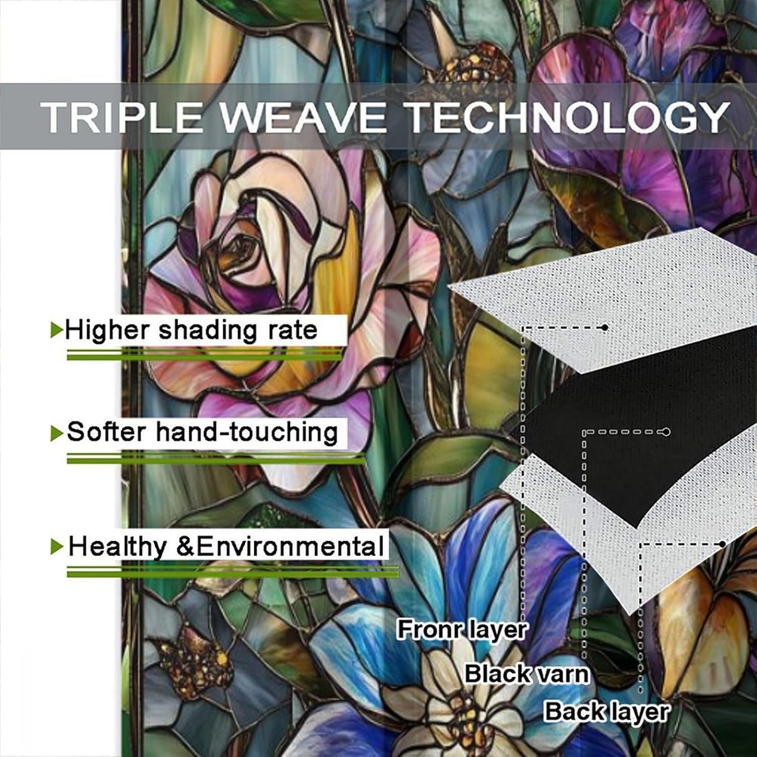 Stained Glass Curtains,Retro Colored Glass Flowers Art Home Decor Drapes for Bedroom Living Room Kitchen Window Treatment 2 Panels Set Total Size 63" W X 72" L Inch