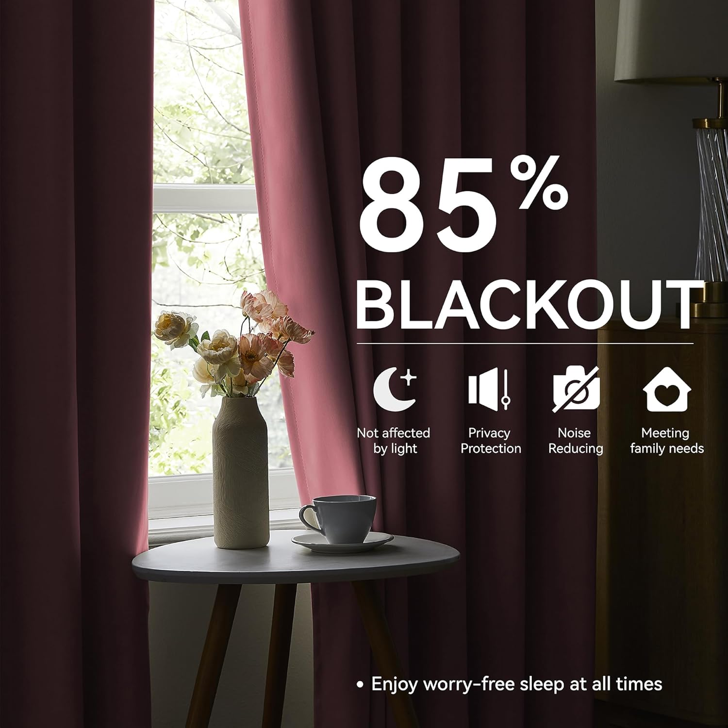 - Room Darkening & Thermal Insulated:Crafted to block out up to 85%–95% of sunlight, these blackout curtains help darken the room, reduce glare, and provide enhanced privacy—ideal for napping, movie nights, or light-sensitive settings. The thermal insulation offers excellent energy saving performance by keeping rooms warmer in winter and cooler in summer. These curtains also provide sound dampening benefits, helping to reduce outside noise for a more peaceful environment.