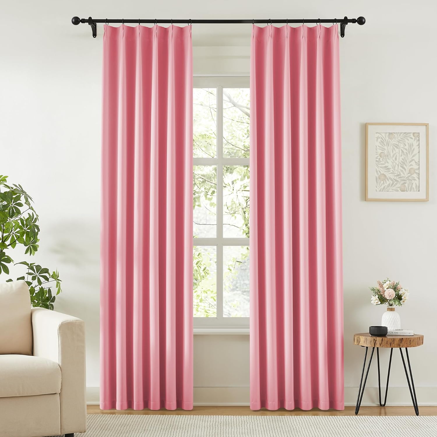 - Pinch Pleated Design:Classic pinch pleats create a clean, tailored look that adds elegance and depth to any space. These window treatments are ideal for both formal and modern interiors, offering a refined upgrade to your elegant modern decor. Perfect for living rooms, bedrooms, dining rooms, and offices, each curtain panel is heat-set and carefully draped to create a smooth, flowing appearance that makes any room look regal and upscale.