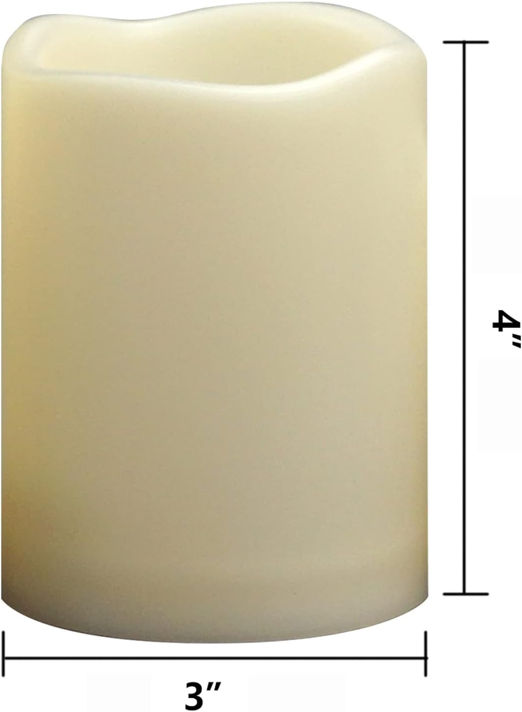 Waterproof Outdoor Battery Operated Flameless Candles with Auto Timer Flickering Plastic Resin Electric LED Pillar Lights for Lantern Patio Garden Wedding Party Decorations 3x4 Inches 6 Pack Ivory