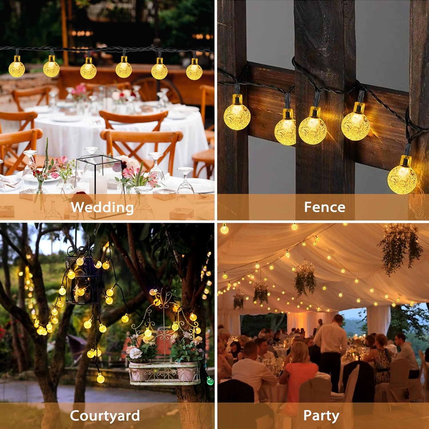 - 【New Generation - 2x46FT 66LEDs Crystal Globe Solar String Lights】Solar string lights outdoor waterproof is made of IP65 Waterproof material, which can withs stand all kinds of extreme weather. Each light has 66 bright LED Crystal Globe bulbs,total lenth 46FT,the diameter of each Crystal Globe is 2.3cm/0.9inch.