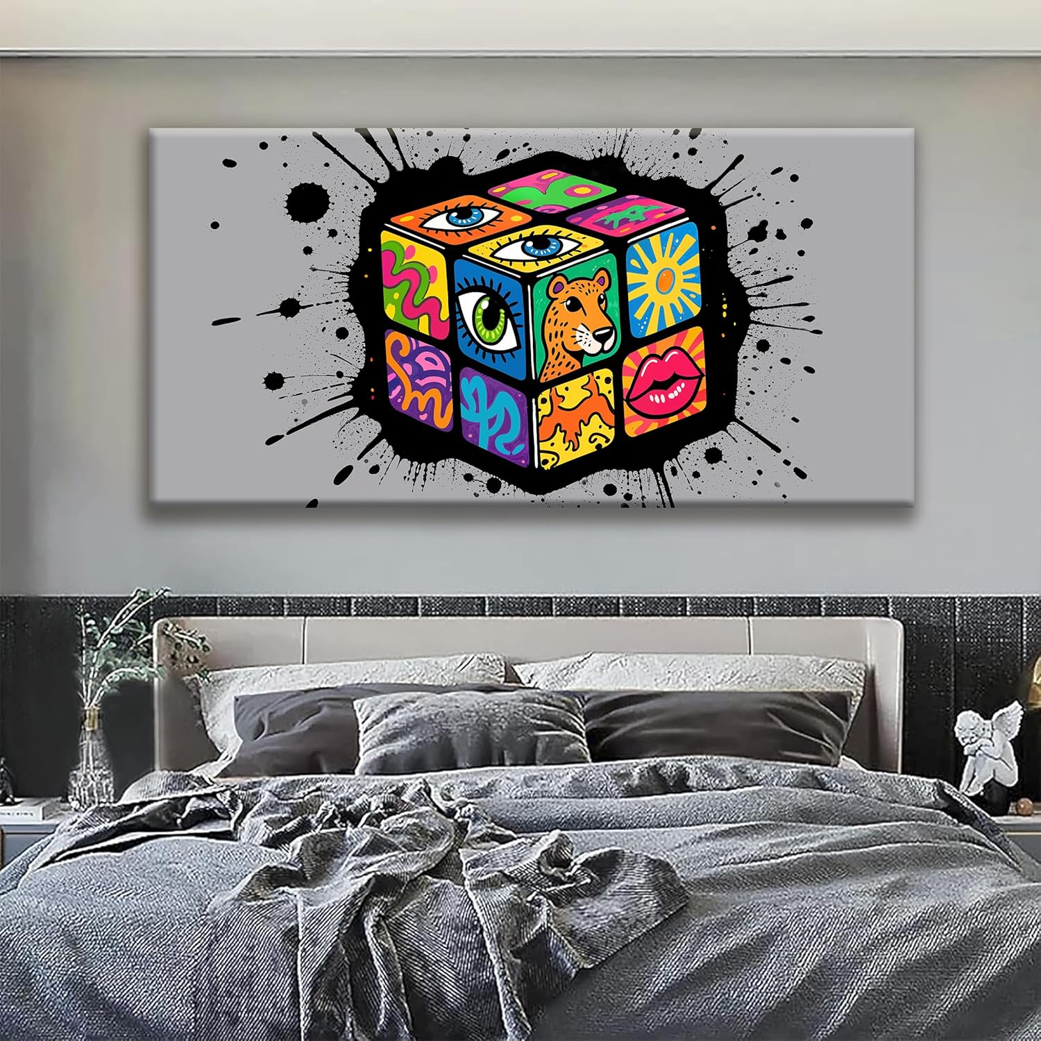 TAIJXAGSG Large Abstract Wall Art Canvas Art Wall Decor Graffiti Cube Wall Art Canvas Picture Painting Artwork For Bedroom Dinning Room Multicolor Wall Artwork 29x58 In