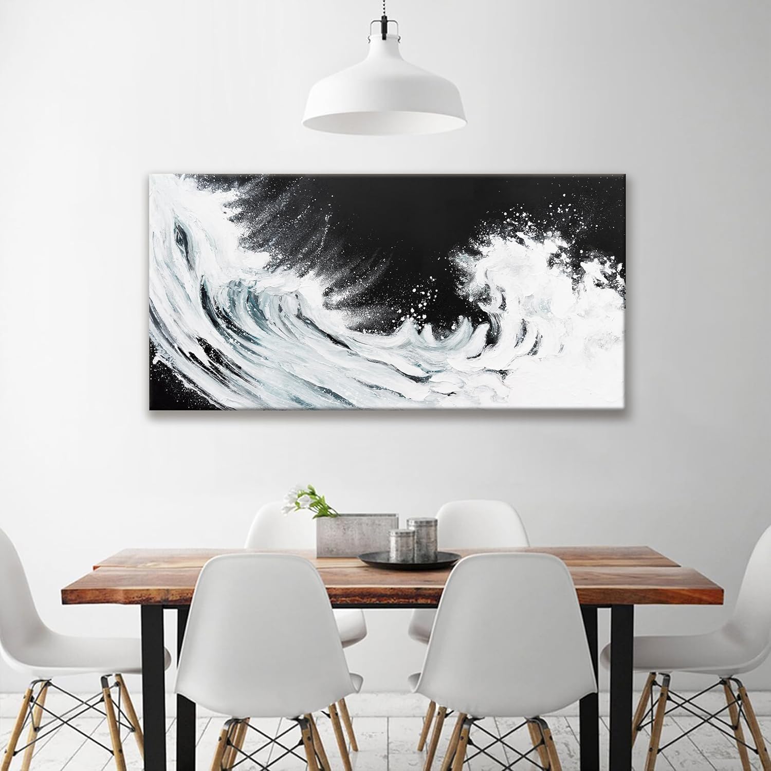 Black Abstract Wall Art Living Room Abstract Painting Wall Decor Modern 24"X 48" Canvas Art Wall Decor Black White Ocean Waves Wall Art Canvas Prints Artwork Pictures For Bedroom Kitchen Artwork
