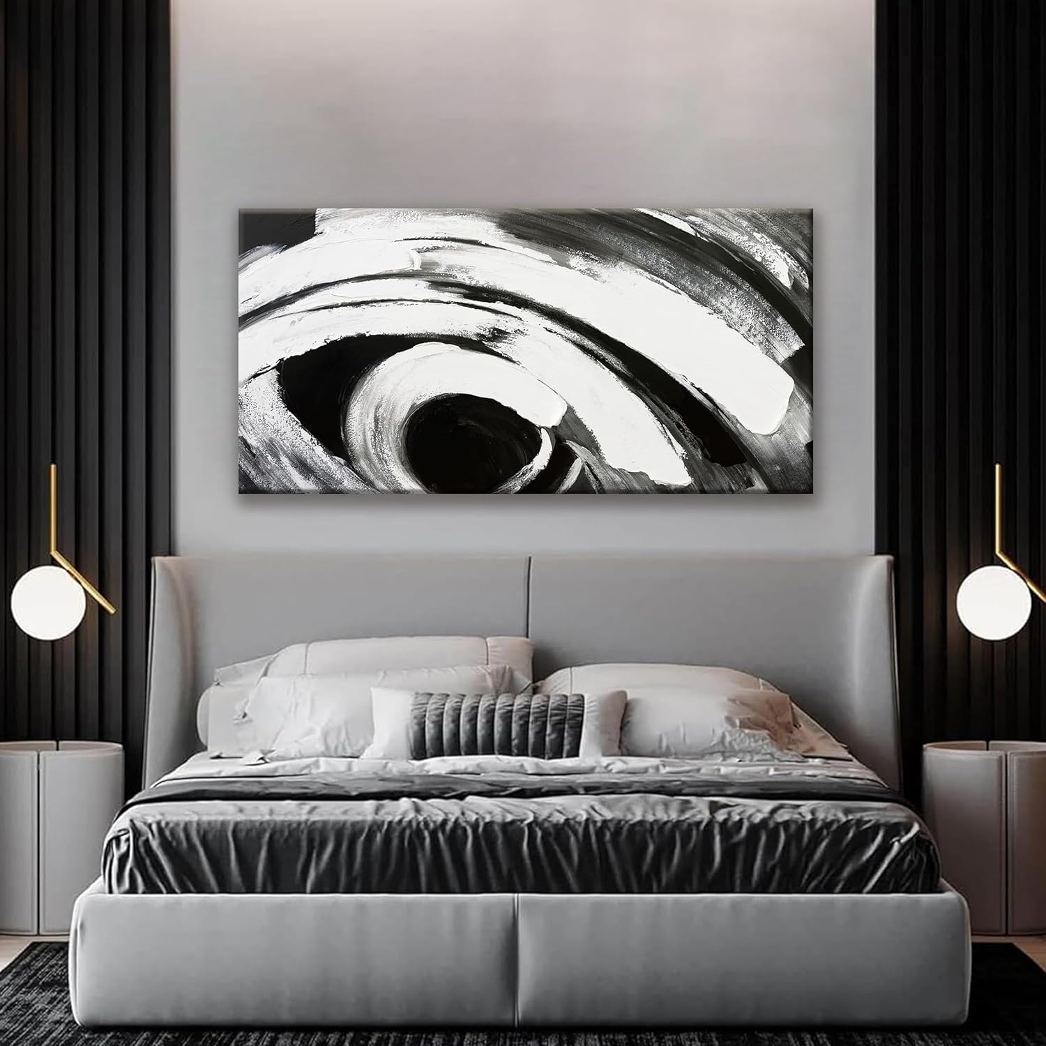 TAIJXAGSG Black And White Wall Art Modern Abstract Wall Decor Canvas Prints Picture Canvas Art Wall Decor Modern Wall Artwork Bedroom Living Room Office Decoration Ready To Hang 24"X48"