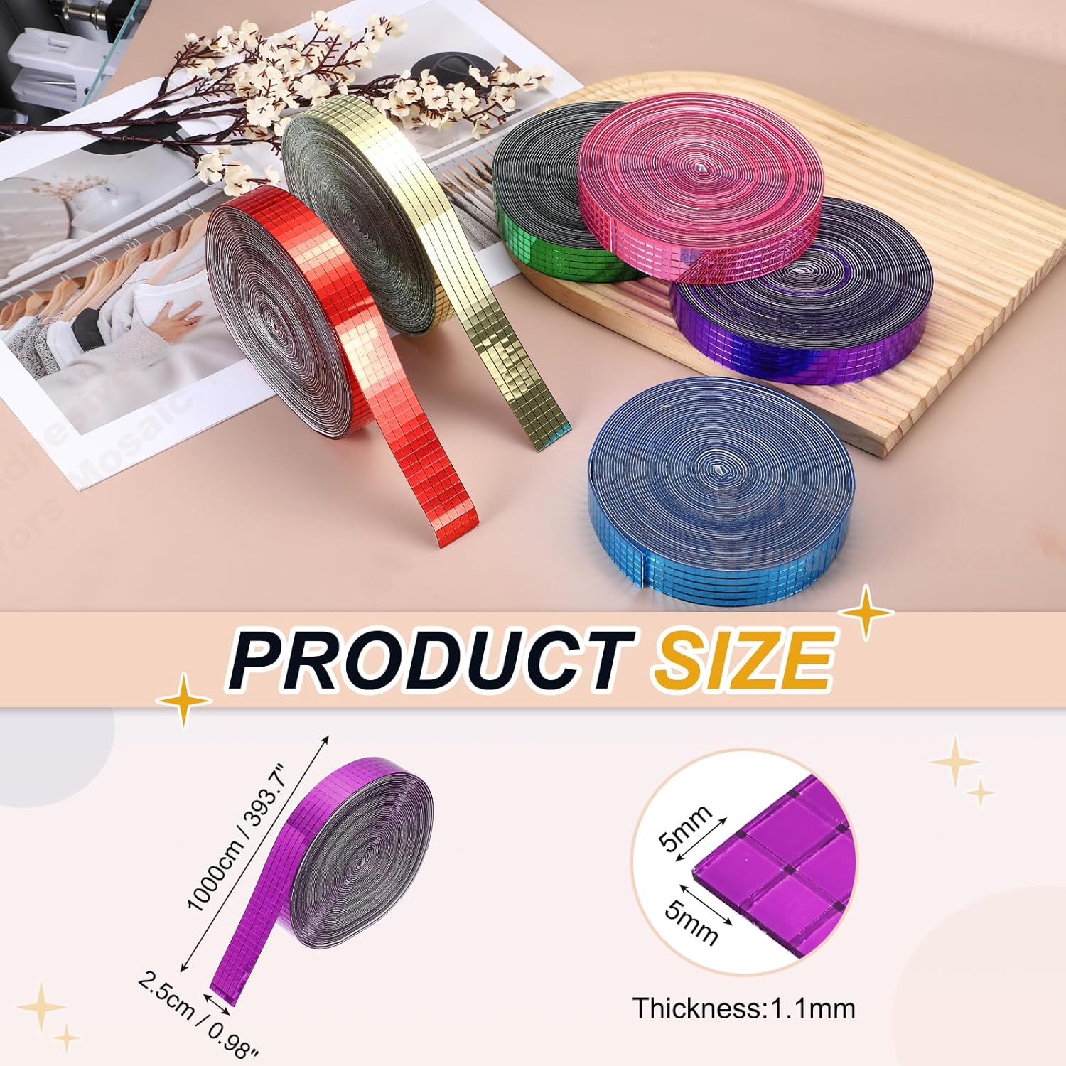 - Specification: Color: Rose Red; Material: Glass; Size:1000x2.5cm/393.7x0.98Inch(LxW); Thickness:1.1mm/0.04inch; Each Tile Size: 5x5mm/0.2x0.2inch; Packing List: 10000 Pcs x Self Adhesive Mirrors Mosaic Tiles (Roll of 1)