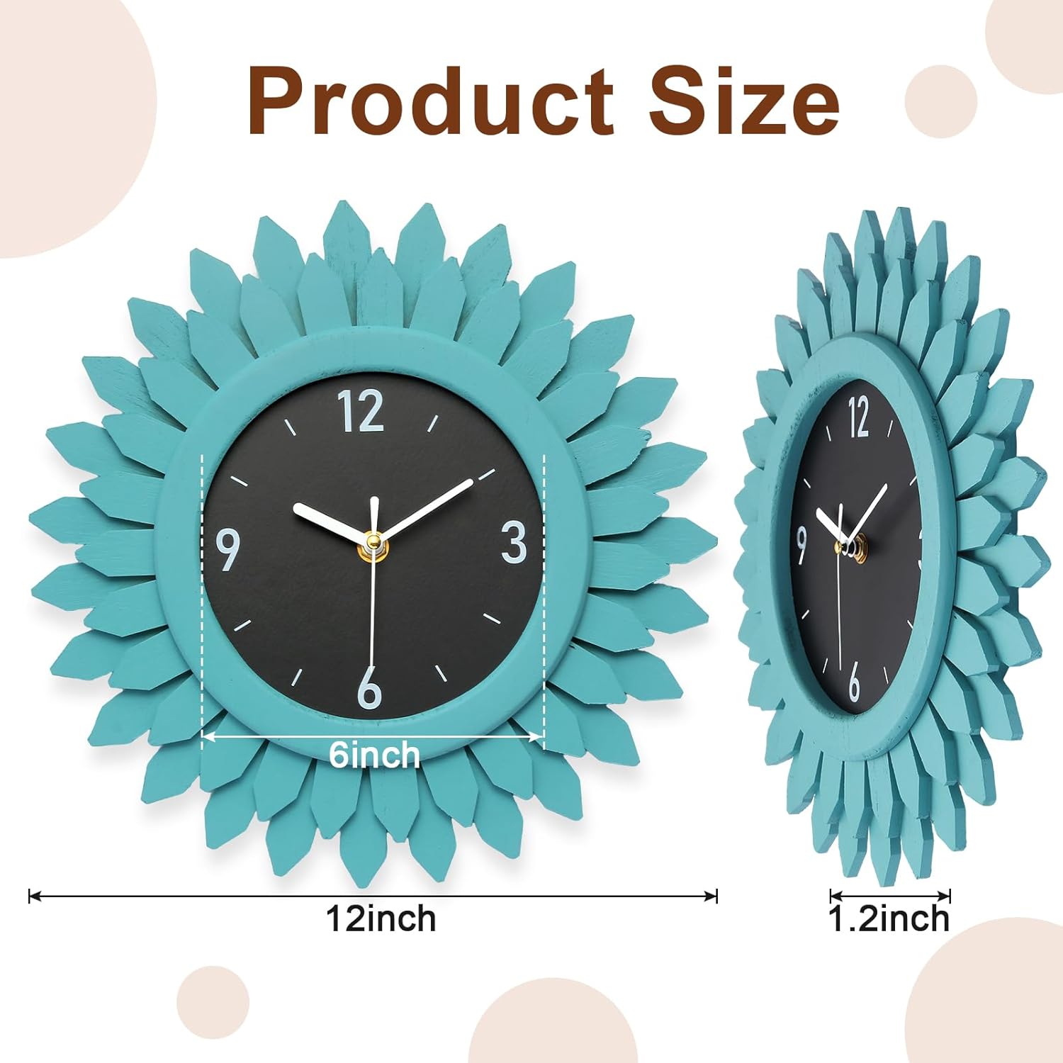 - Boho Wall Decor Clock: Inspired by the sunburst of Bohemian style, this modern wall clock face design is unique and eye-catching, 2 tier wood sunburst looks like the "sun". With a black wooden case, white hour, minute and seconds hands and large white numbers, this decorative wall clock is easy to read from a distance