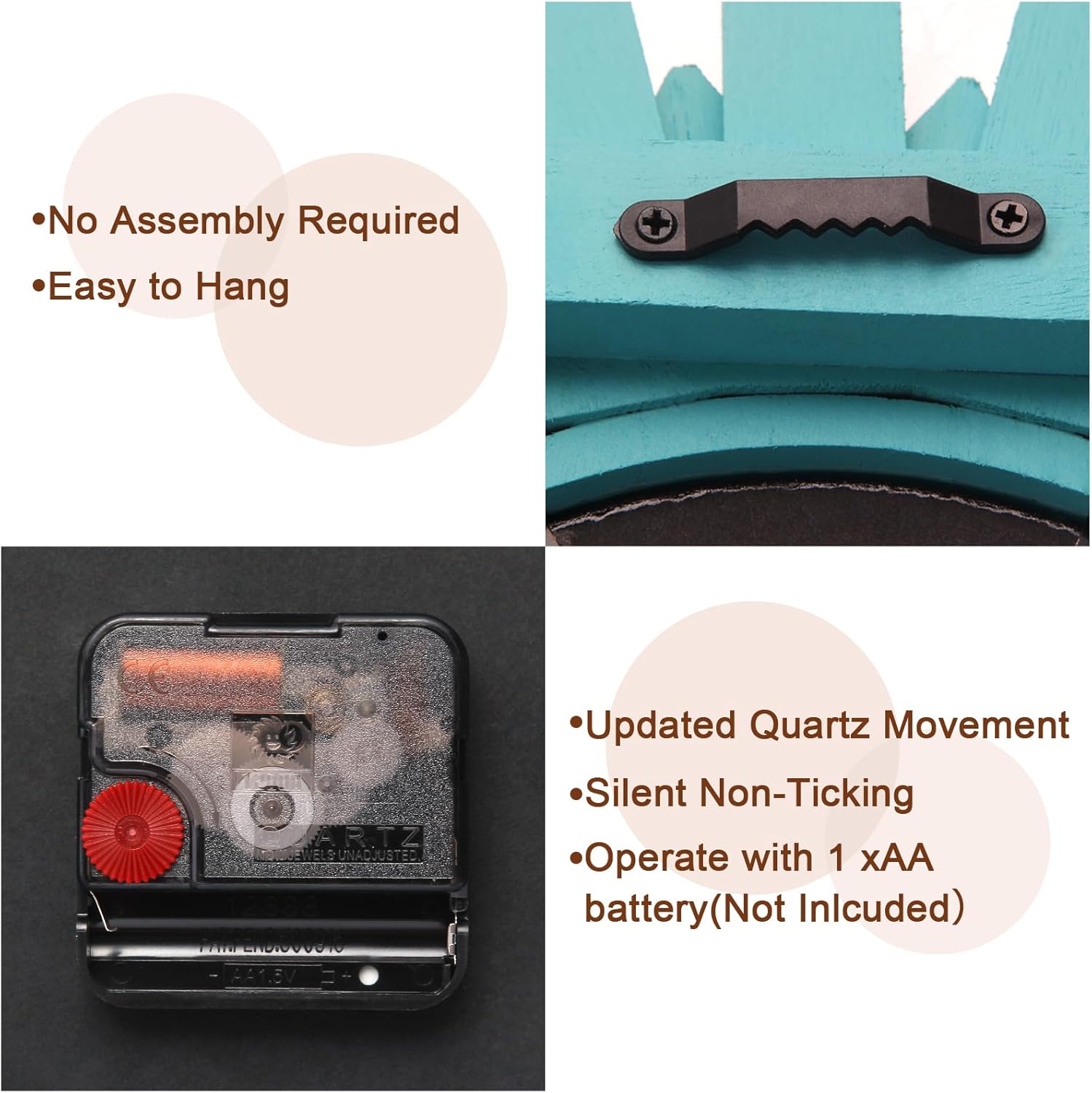 - Special Feature : Silent Clock, natural solid wood & no need assembly, wall decor