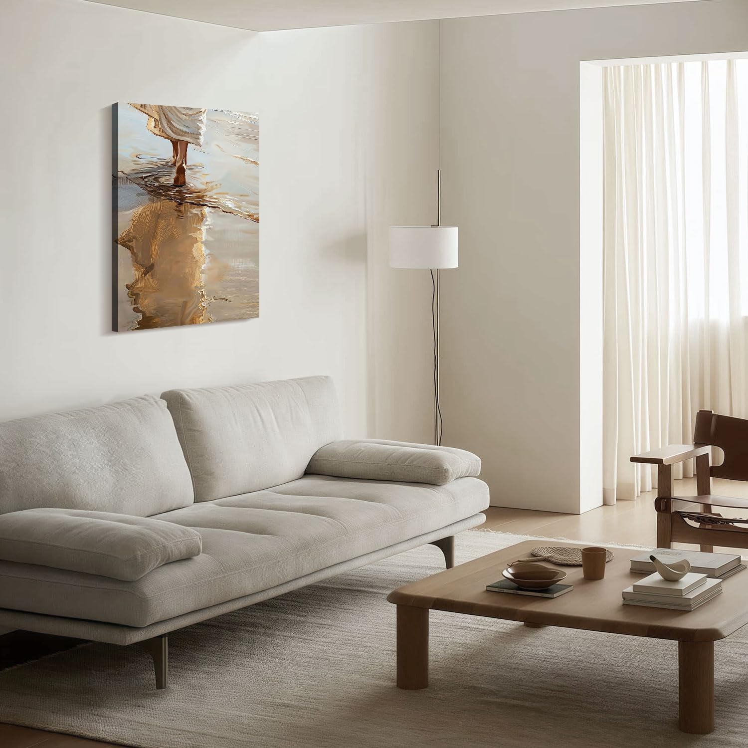 - Faith-Inspired Artwork Set:This 1-piece framed wall art set features a serene portrayal of Jesus walking along the beach, capturing a sense of peace, guidance, and spiritual comfort in each canvas.