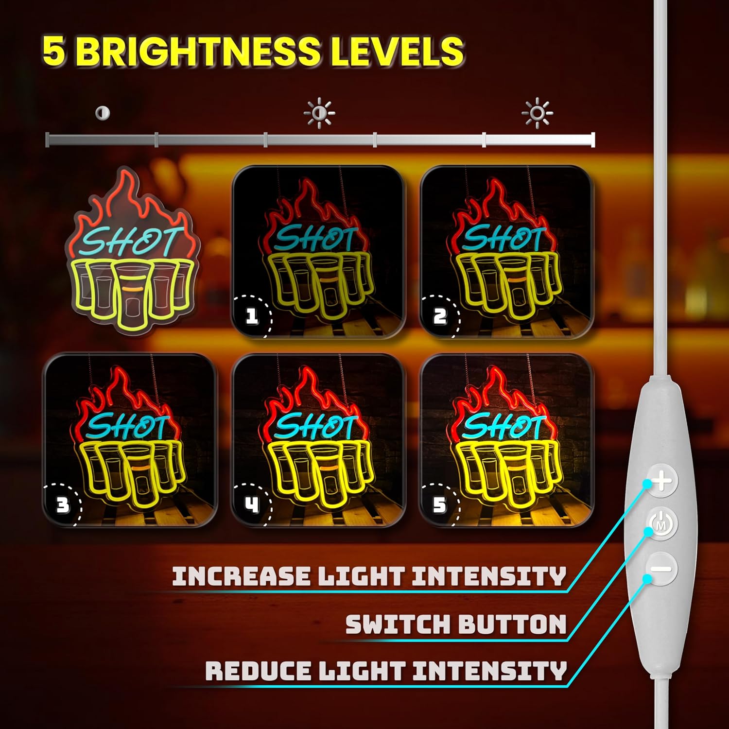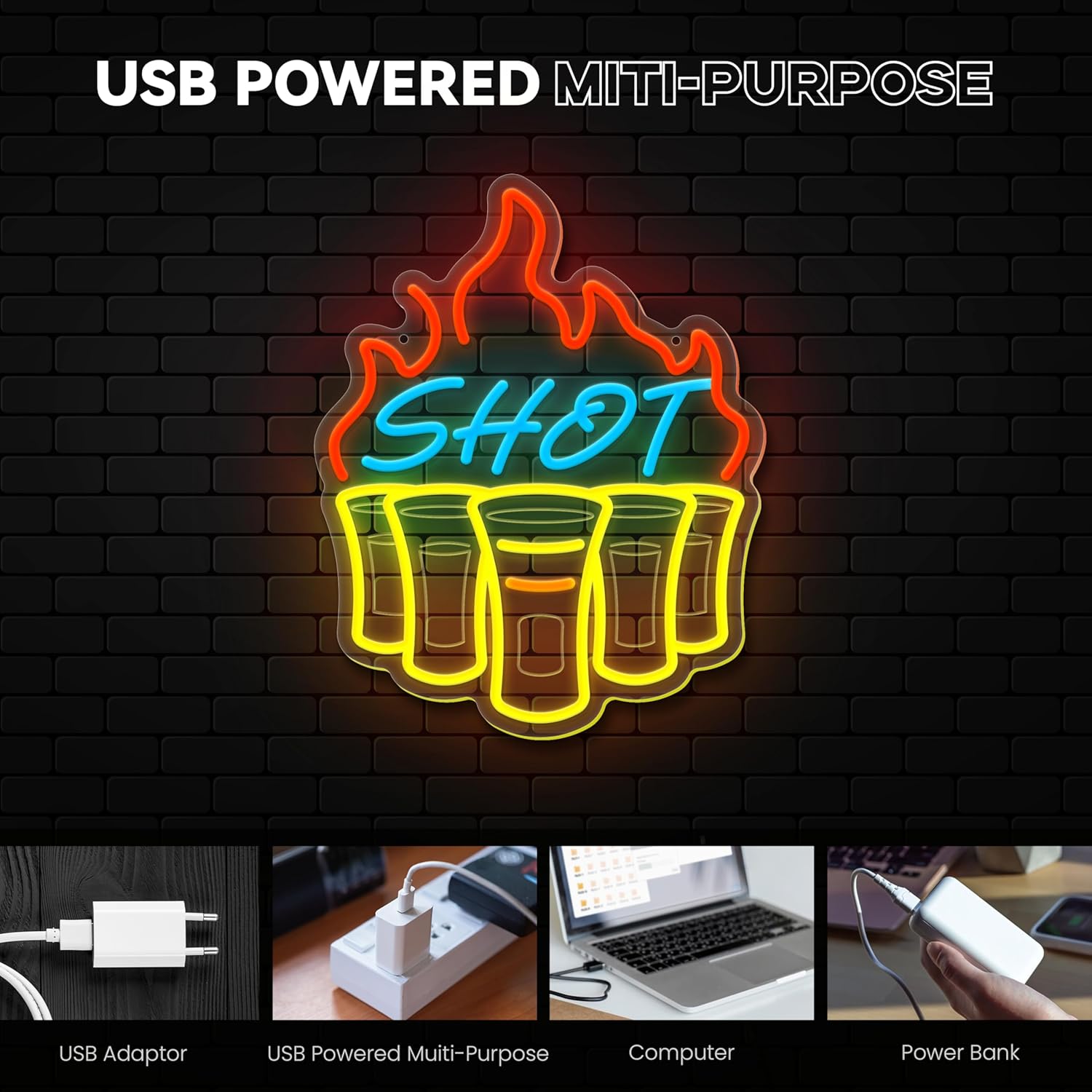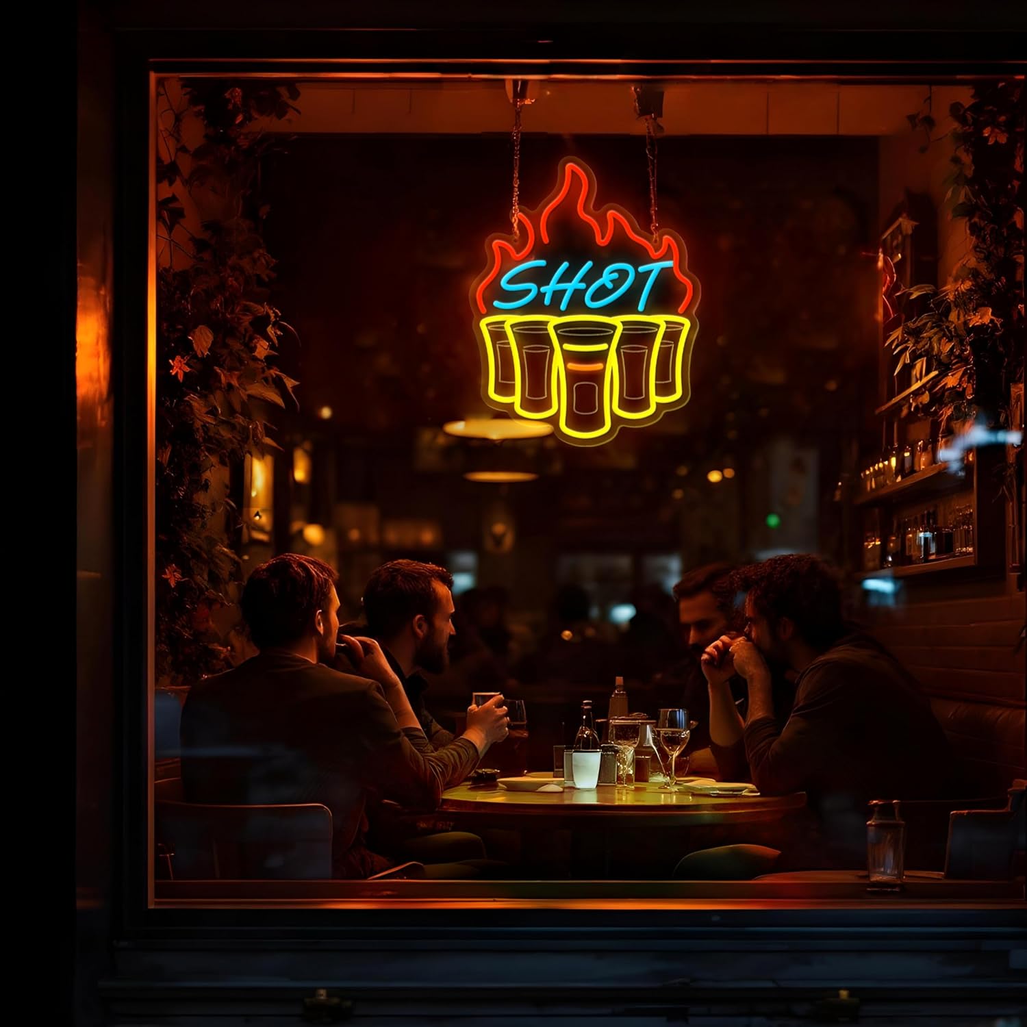 Shot Neon Signs for Wall Decor, Bar Neon Sign, Dimmable Acrylic LED Lights for Home Bar Pub Club Bistro Man Cave Restaurant Party Decorations Gift