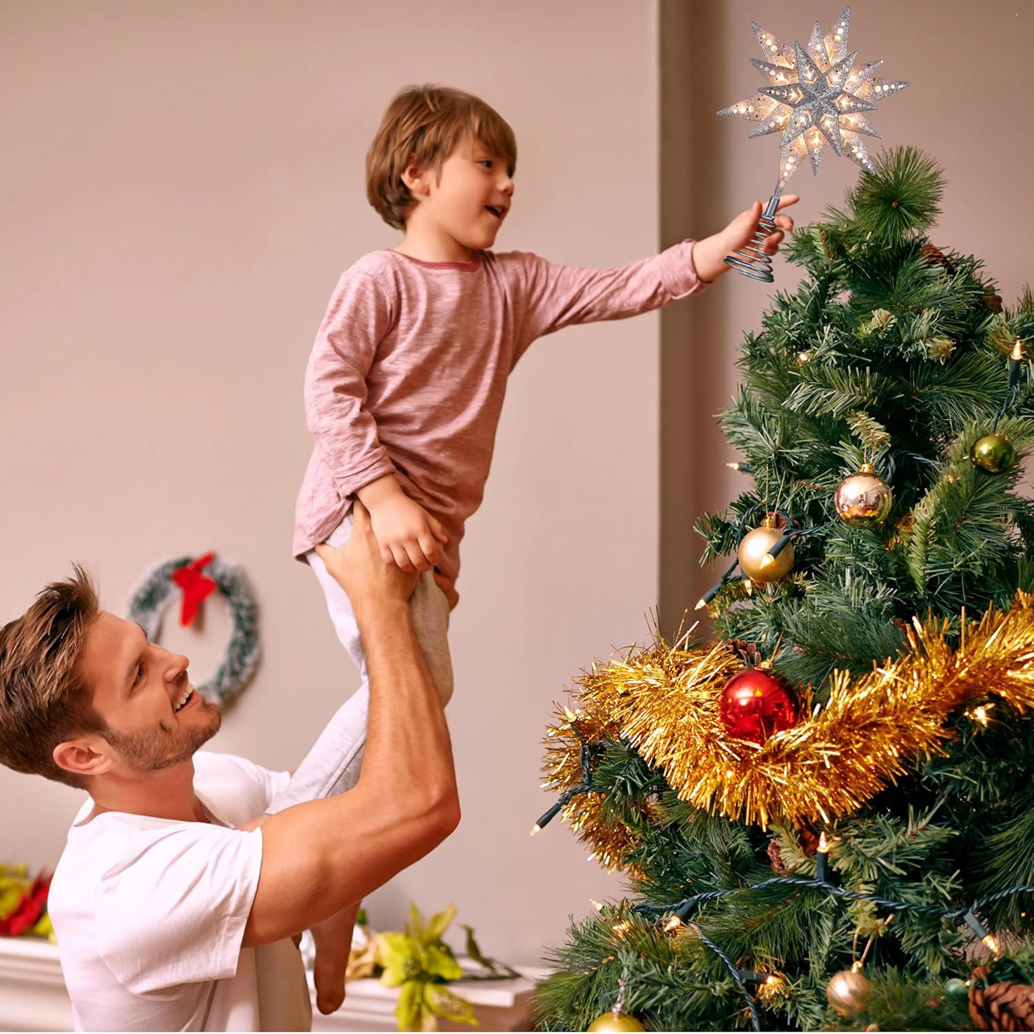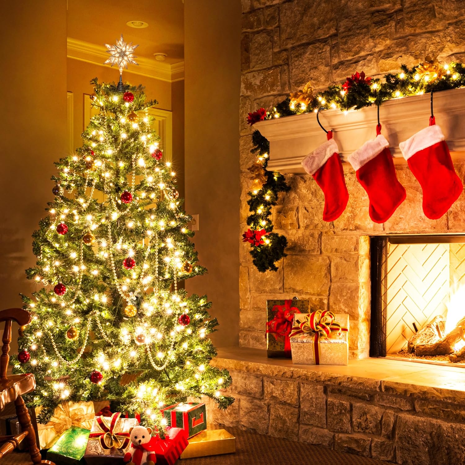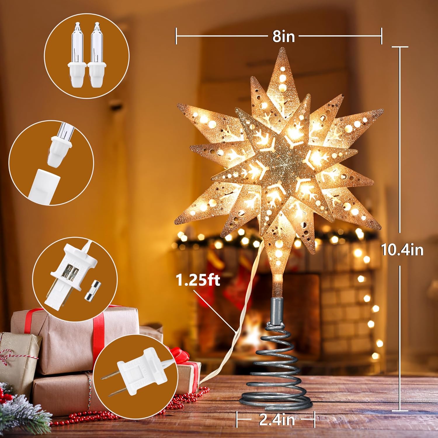 - Warm White Christmas Tree Topper Lights: Equipped with 25 clear incandescent bulbs, the topper glows in a cozy warm white, creating a classic festive atmosphere that makes your Christmas tree more radiant and inviting.