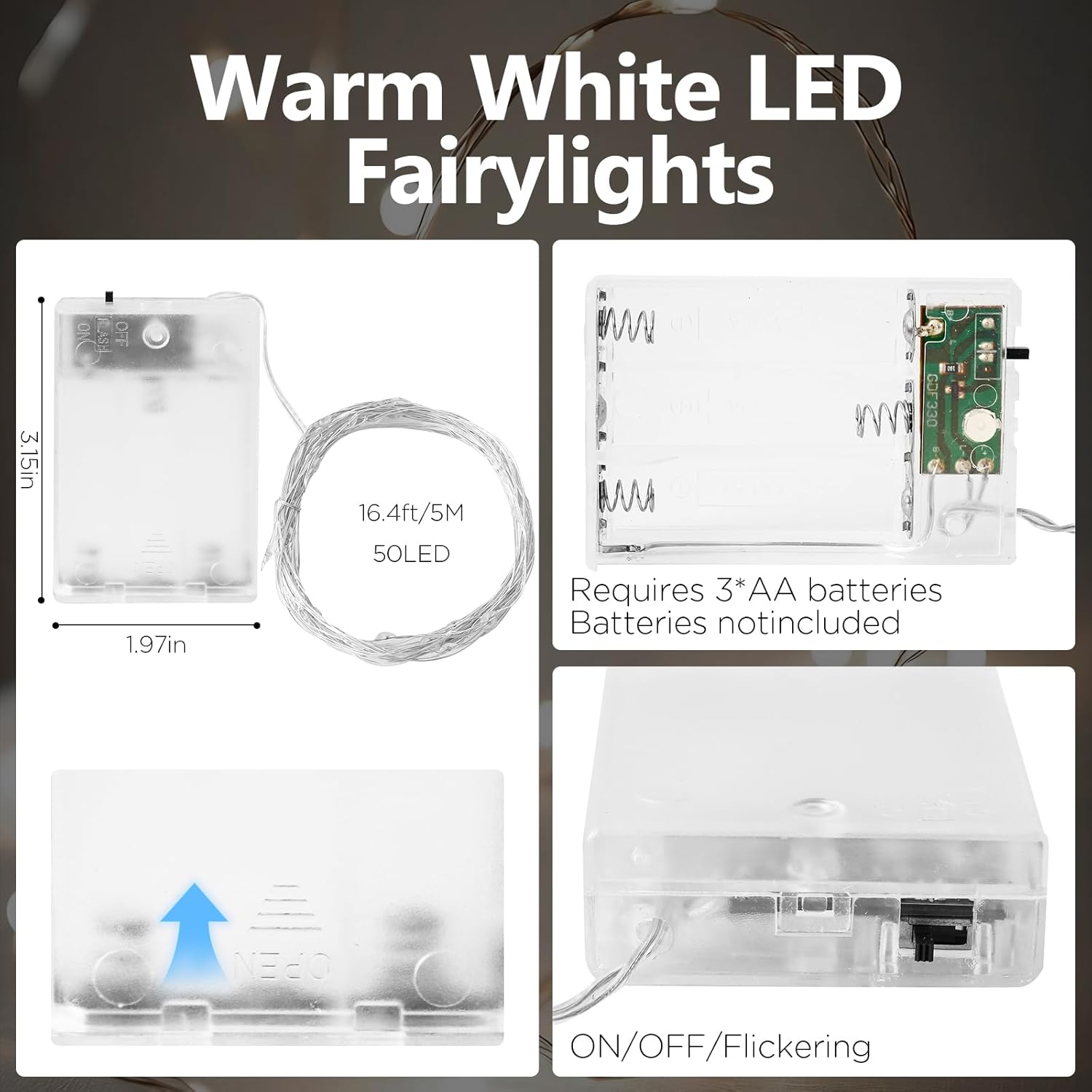 - 8 Pack of Fairy Lights: Fairy Lights Powered by 3 AA batteries (not included), each string of Fairy Lights has 20ft 50 energy-efficient Leds. The upgraded design has significantly extended the working hours of Fairy Lights.